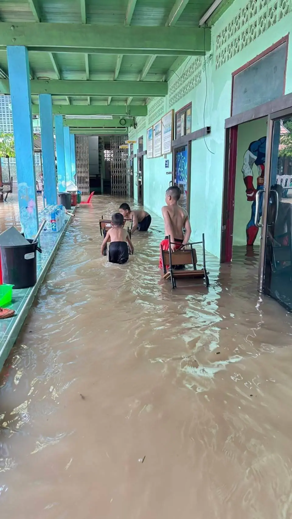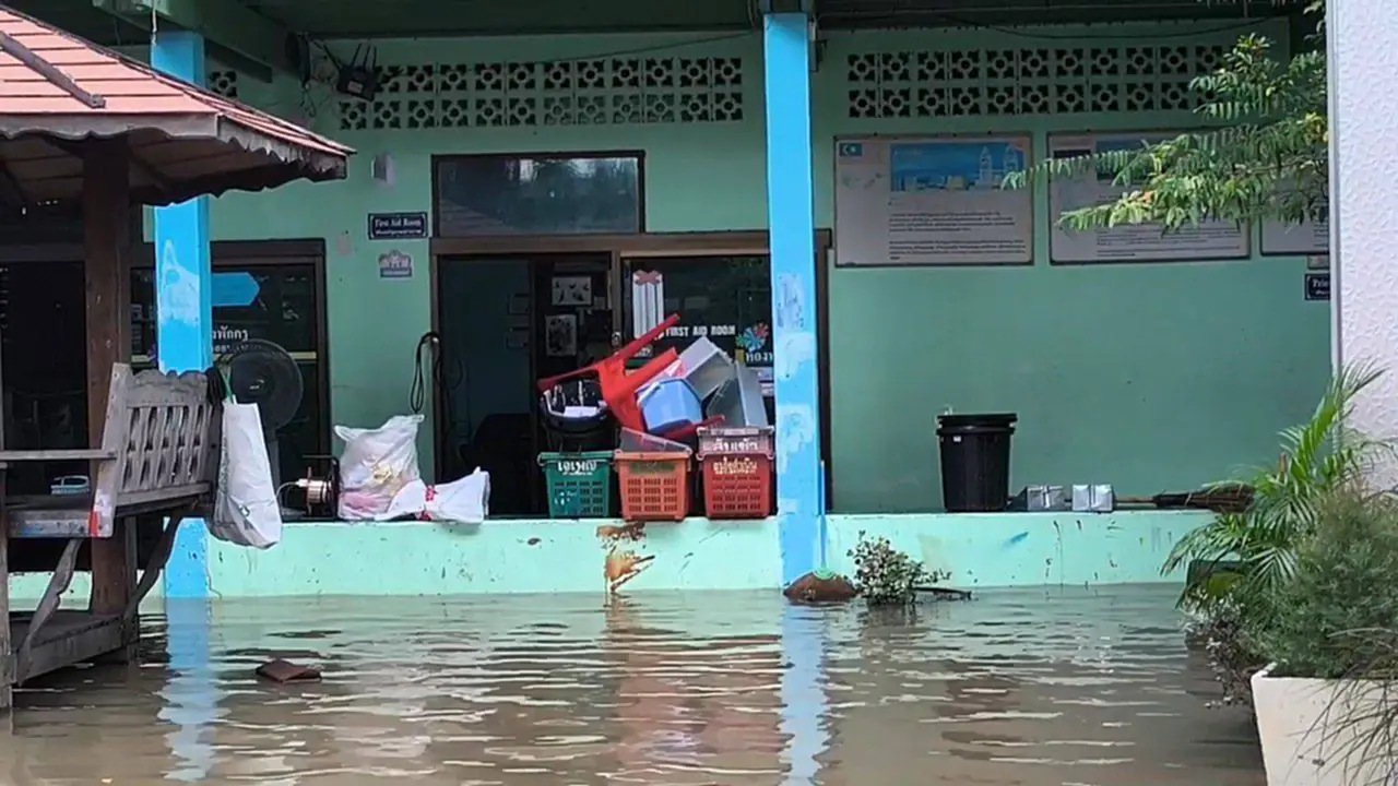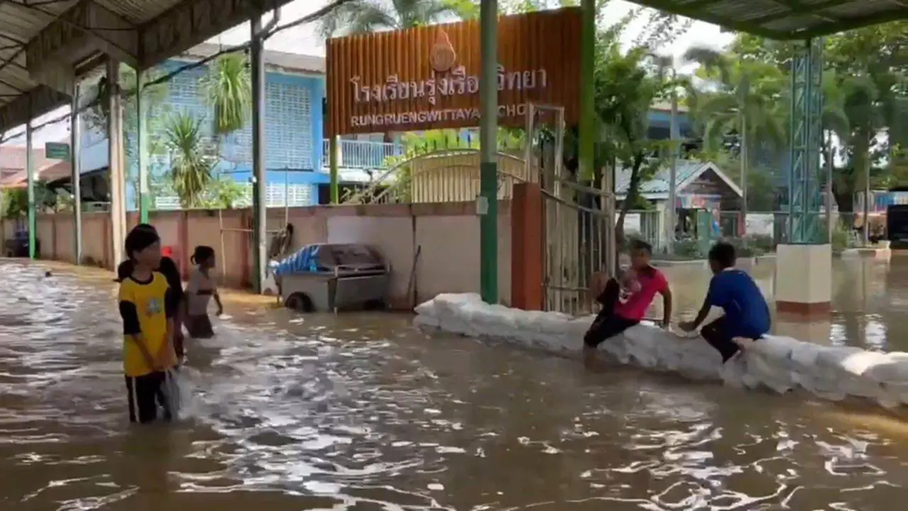 ผู้สื่อข่าวได้ลงพื้นที่บริเวณ โรงเรียนรุ่งเรืองวิทยา ต.ท่าอิฐ อ.ปากเกร็ด จ.นนทบุรี พบ นายปรีดา เชื้อผู้ดี นายก อบต.ท่าอิฐ อ.ปากเกร็ด จ.นนทบุรี , นางสาววรรณวิภา ฉลาด ผอ.โรงเรียนรุ่งเรืองวิทยา , นายกษมา ท่าอิฐ ผู้ใหญ่บ้านหมู่ 10 และเจ้าหน้าที่ได้ช่วยกันกั้นกระสอบทรายด้านทางเข้าโรงเรียน และขนของออกจากภายในห้องเรียนชั้นด้านล่างสุด แต่ไม่สามารถกั้นน้ำอยู่ได้ เนื่องจากปริมาณน้ำเพิ่มสูงขึ้นทุกวัน ทำให้โรงเรียนด้านล่างจมน้ำและข้าวของเสียหายเช่น โต๊ะนักเรียน ตู้เก็บของ และโต๊ะคุณครู รวมถึงอุปกรณ์ของเล่นเด็กเล็กชั้นอนุบาล ทางโรงเรียนจึงประกาศเลื่อนเปิดเรียนเป็นวันที่ 13 พ.ย.68 แต่หากน้ำมีปริมาณเพิ่มขึ้นจะทำการเลื่อนปิดโรงเรียนโดยไม่มีกำหนดเปิด และจะทำการเรียนการสอนให้กับเด็กผ่านทางออนไลน์แทน
