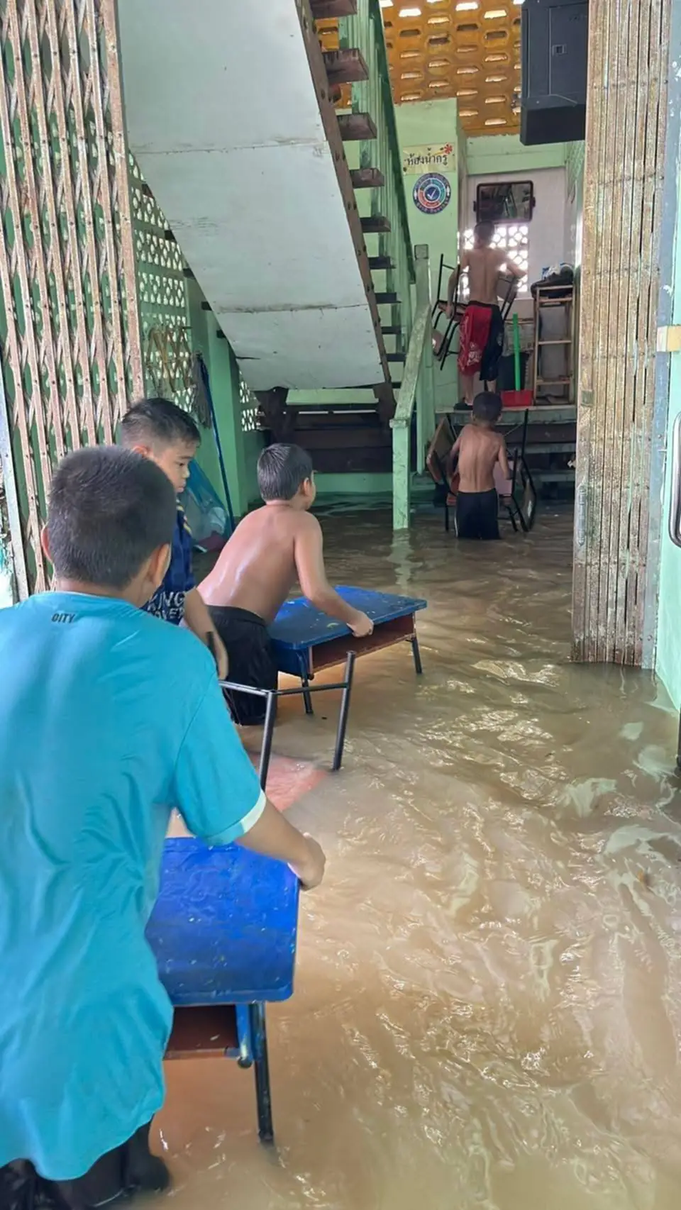 จากการสอบถาม นางสาววรรณวิภา ผอ.โรงเรียน กล่าวว่า โรงเรียนเปิดภาคเรียนที่สองเมื่อวันที่ 3 พฤศจิกายน ที่ผ่านมา แต่เปิดเรียนได้เพียงสามวัน จึงได้ปรับรูปแบบการเรียนการสอนเป็นแบบออนไลน์เพราะเนื่องจากสถานการณ์อุทกภัยในพื้นที่ ซึ่งได้มีการมอบหมาย งานหรือการบ้านในชั้นเรียนผ่านทางไลน์กรุ๊ปที่มีผู้ปกครองอยู่ในกรุ๊ป โดยจะมีไลน์กรุ๊ปทุกห้องเรียนและทุกชั้นเรียน ซึ่งการมอบหมายงานหรือการบ้านในลักษณะนี้จะทำให้นักเรียนสามารถเรียนหนังสือได้ตามปกติโดยมีผู้ปกครองเป็นผู้กำกับดูแลให้งานหรือการบ้านเสร็จตามกำหนด โดยจะมีการเรียนการสอนในรูปแบบออนไลน์จนถึงวันที่ 13 พฤศจิกายน และจะรอดูสถานการณ์ ว่าสามารถเปิดเรียนในรูปแบบออนไซด์ได้ตามปกติหรือไม่