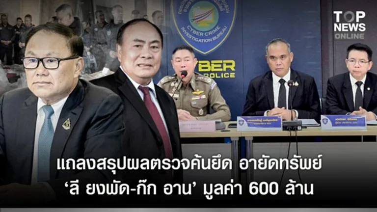 “ปปง.” ร่วม “สอท.” แถลงสรุปผลตรวจค้นยึด อายัดทรัพย์ “ลี ยงพัด-ก๊ก อาน” มูลค่า 600 ล้าน ยันไม่พบเส้นเงินโยงบุคคลสำคัญในไทย – Top News รายงาน