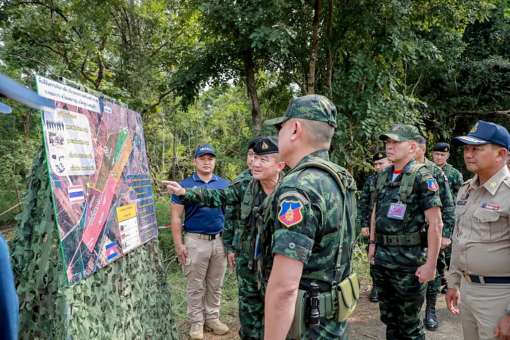 วันที่ 12 พ.ย.68 พลโท วรยส เหลืองสุวรรณ แม่ทัพภาคที่ 1 ผู้บัญชาการศูนย์ปฏิบัติการร่วมกองทัพภาคที่ 1 ตรวจเยี่ยมพื้นที่ชายแดนไทย-กัมพูชา จ.สระแก้ว เพื่อติดตามสถานการณ์และการเตรียมความพร้อมของ กองกำลังบูรพา และส่วนราชการในพื้นที่ โดยประชุมหารือร่วมกับ นายปริญญา โพธิสัตย์ ผู้ว่าราชการ จ.สระแก้ว, กกล.บูรพา, ตำรวจภูธรภาค 2, ตำรวจภูธร จ.สระแก้ว, ฝ่ายปกครองและส่วนราชการที่เกี่ยวข้อง รับฟังการบรรยายสรุปสถานการณ์ชายแดนไทย-กัมพูชา พร้อมนำคณะตรวจเยี่ยมการปฏิบัติงาน ณ จุดผ่านแดนถาวรบ้านคลองลึก รับทราบมาตรการควบคุมการปิดด่านชายแดน โดย แม่ทัพภาคที่ 1 ผบ.ศปก.ทภ.1 ได้เน้นย้ำให้ทุกภาคส่วนดำรงมาตรการปิดด่านทุกด่านอย่างเข้มงวด ควบคู่กับการตั้งจุดตรวจจุดสกัดและการลาดตระเวนเฝ้าตรวจ ตามช่องทางหลักและช่องทางธรรมชาติ เพื่อสกัดกั้นการกระทำผิดกฎหมายในทุกรูปแบบ ทั้งการลักลอบเข้าเมืองและการปราบปรามสแกมเมอร์ นอกจากนี้ได้ไปตรวจเยี่ยมสถานีรถไฟบ้านคลองลึก เพื่อติดตามมาตรการตัดไฟฟ้าและอินเตอร์เน็ต ซึ่งเป็นพื้นที่ความรับผิดชอบของการไฟฟ้าอรัญประเทศ และกสทช.เขต 14 พร้อมเน้นย้ำให้เข้มงวดการตรวจสอบการลักลอบส่งไฟฟ้าหรืออินเตอร์เน็ตข้ามไปฝั่งตรงข้ามในทุกพื้นที่