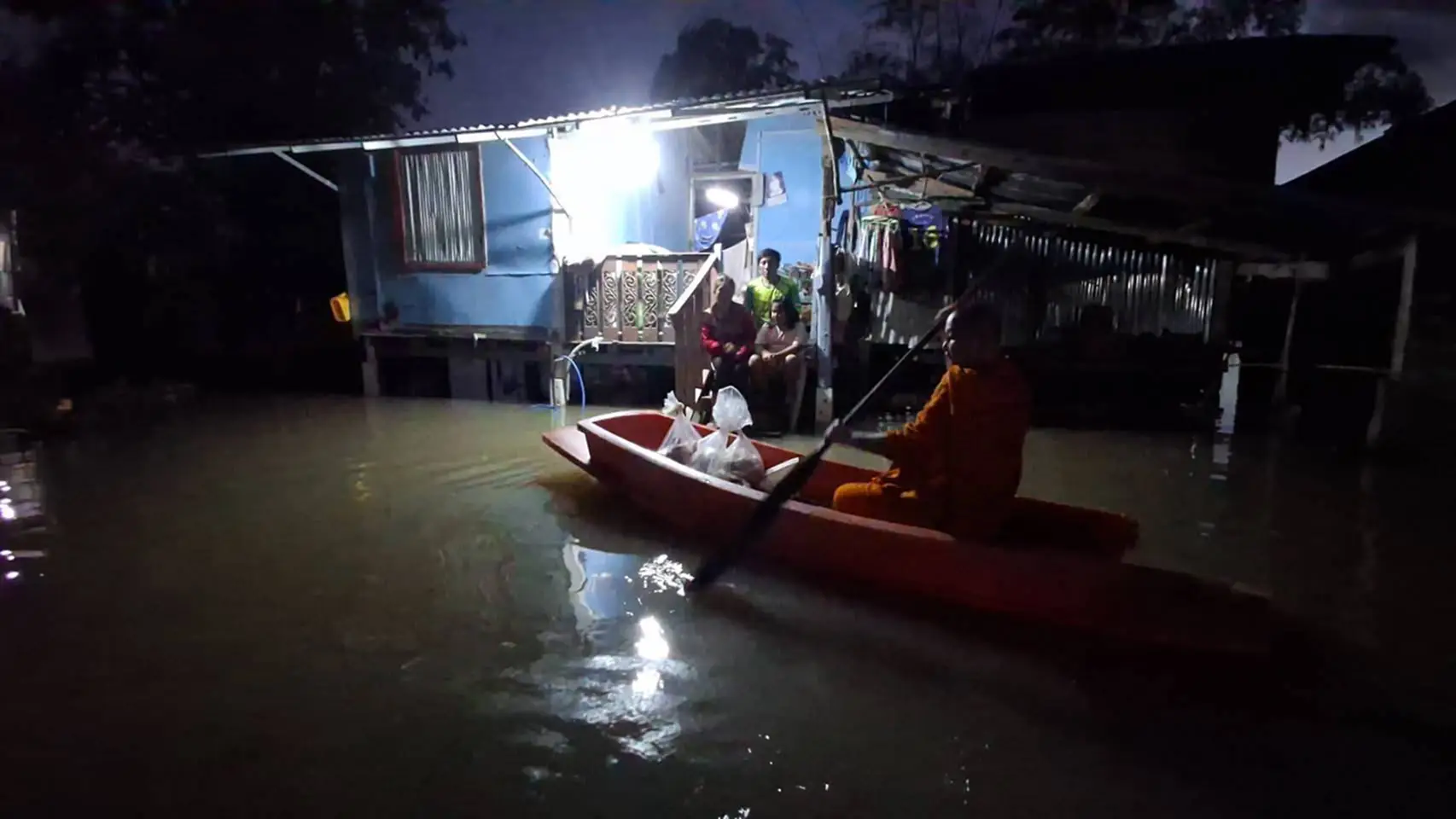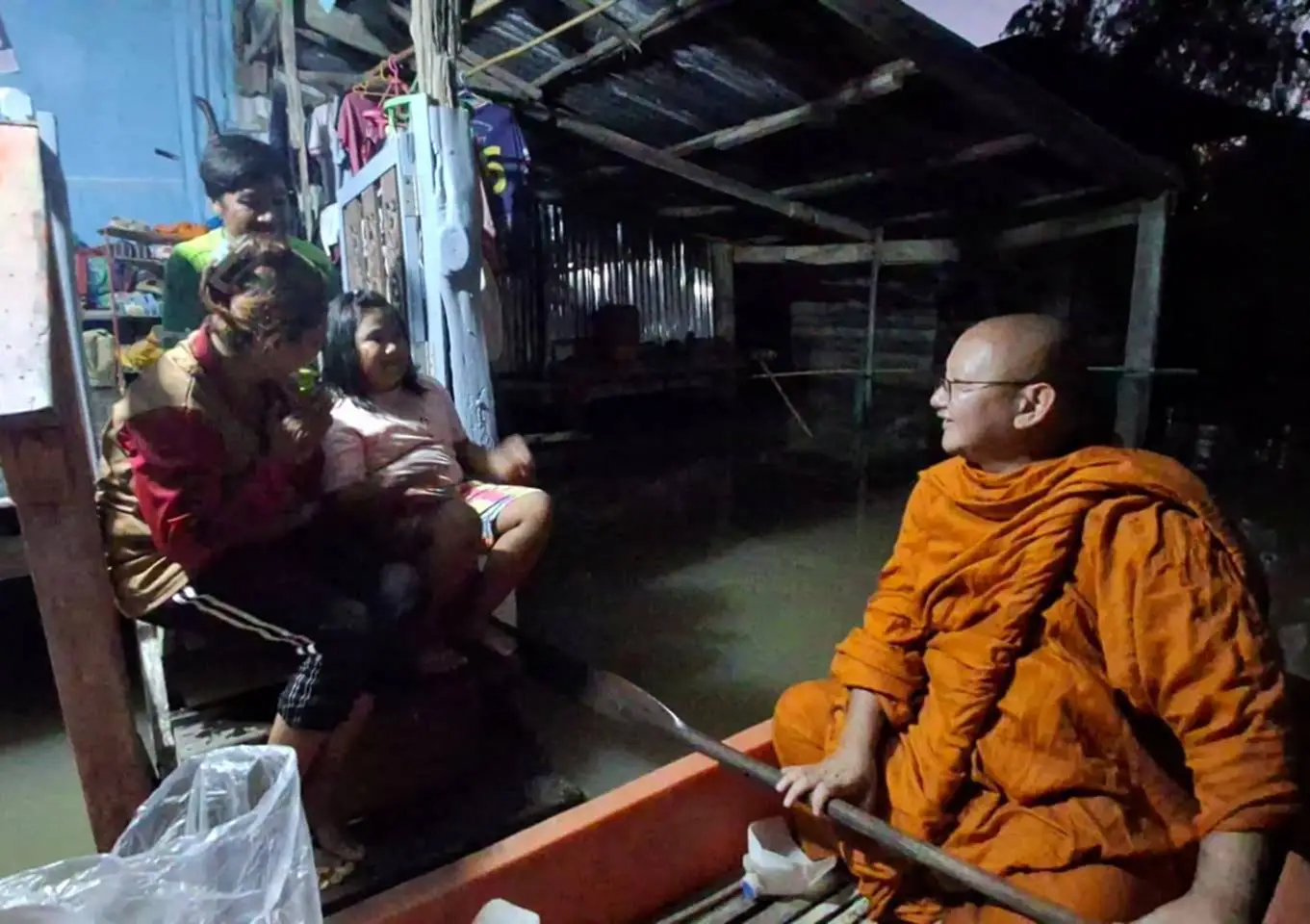 ต่อมา พระครูปลัดสุวัฒนสาธุคุณ (หลวงพี่นาค) เจ้าคณะตำบลบ้านกล้วย เจ้าอาวาสวัดพลายชุมพล ต.บ้านกล้วย ในฐานะประธานมูลนิธิพลายชุมพล ในอุปถัมภ์ของ สมเด็จพระมหาธีราจารย์ เจ้าคณะใหญ่หนเหนือ ประธานฝ่ายสาธารณสงเคราะห์ของมหาเถรสมาคม ได้พายเรือฝ่ายสายน้ำ นำอาหารและน้ำดื่ม ซึ่งมีผู้ใจบุญร่วมบริจาคกับมูลนิธิพลายชุมพล เข้าไปมอบให้กับผู้ประสบอุทกภัยถึงหน้าบ้านด้วยตัวเอง สร้างความซาบซึ้งใจแก่ผู้ที่กำลังได้รับความเดือดร้อนอยู่ในขณะนี้ ถึงกับยกมือพนมท่วมหัว