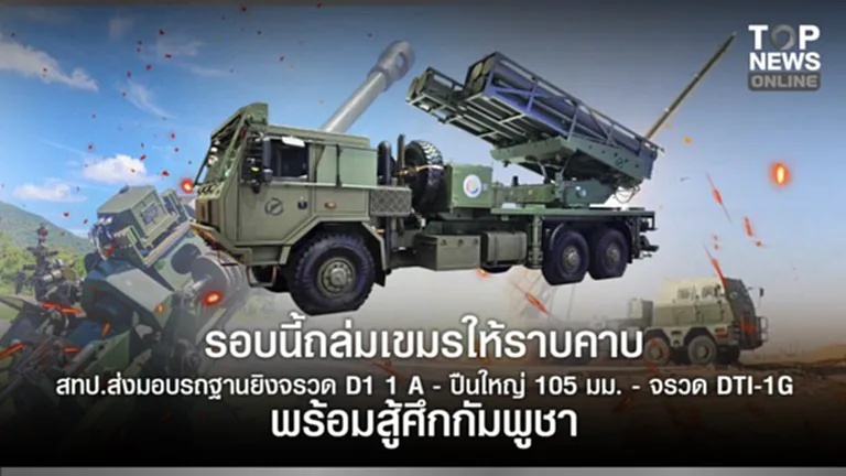 รอบนี้ถล่มเขมรให้ราบคาบ “สทป.” พร้อมส่งมอบรถฐานยิงจรวด D1 1 A – ปืนใหญ่ 105 มม. พร้อมจรวดยิงหลายลำกล้อง DTI-1G อานุภาพยิงไกล 150-300 กม. ให้กองทัพบก สู้ศึกกัมพูชา – Top News รายงาน
