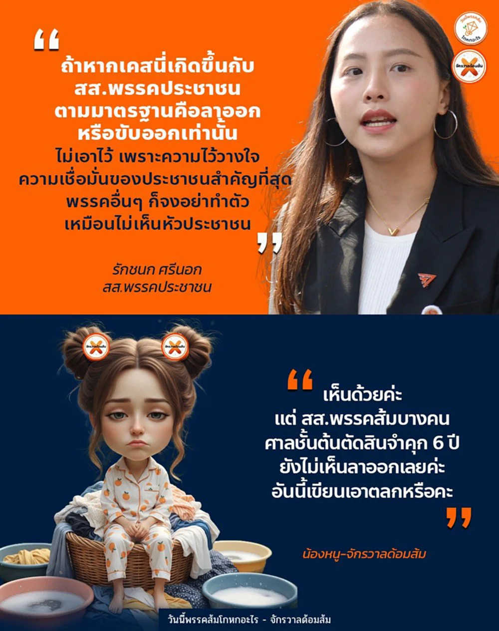 โดยระบุข้อความว่า ถ้าหากเคสนี่เกิดขึ้นกับ สส.พรรคประชาชน ตามมาตรฐานคือลาออกหรือขับออกเท่านั้น ไม่เอาไว้ เพราะความไว้วางใจความเชื่อมั่นของประชาชนสำคัญที่สุด