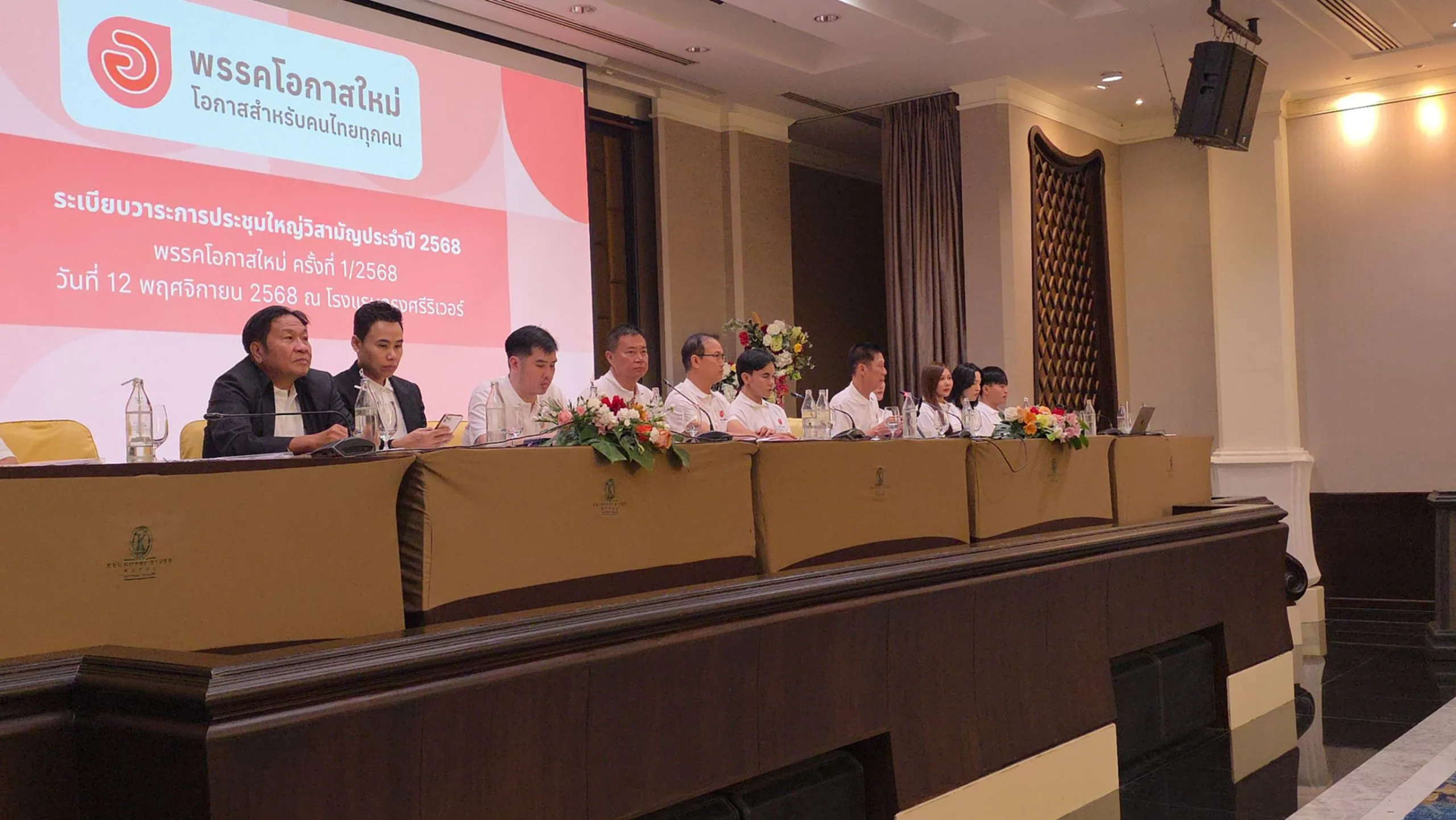 วันที่ 12 พ.ย.เวลา 9.00 น. พรรคโอกาสใหม่ จัดประชุมใหญ่วิสามัญประจำปี 2568 ครั้งที่ 1/2568 ที่กรุงศรีริเวอร์ จ. พระนครศรีอยุธยา โดยวาระการประชุมที่สำคัญ เลือกคณะกรรมการบริหารพรรคชุดใหม่ พร้อมพิจารณาแก้ไขเปลี่ยนแปลงข้อบังคับพรรค เปลี่ยนแปลงเครื่องหมายพรรคและความหมาย รวมถึงนโยบายพรรคด้านเศรษฐกิจและความมั่นคง โดยมี นายสุปกิต โพธิ์ปภาพันธ์ หัวหน้าพรรค พร้อมกรรมการพรรคประธานในที่ประชุม มีสมาชิกเข้าร่วม 40 จังหวัด โดยมีสาขาครบ 77 จังหวัด ซึ่งก่อนการประชุมได้มีการยืนถวายความอาลัยแด่ สมเด็จพระนางเจ้าสิริกิติ์ พระบรมราชินีนาถ พระบรมราชชนนีพันปีหลวง 93 วินาที ทั้งนี้หลังจากที่ประชุมได้มีการ เลือกตั้งลงคะแนนโหวตหัวหน้าพรรค ตำแหน่งหัวหน้าพรรค ซึ่งมีชื่อของนายจตุพร บุรุษพัฒน์ อดีตรมว.พาณิชย์ อดีตปลัดกระทรวงทรัพยากรธรรมชาติและสิ่งแวดล้อม เป็นแคนดิเดตหัวหน้าพรรค