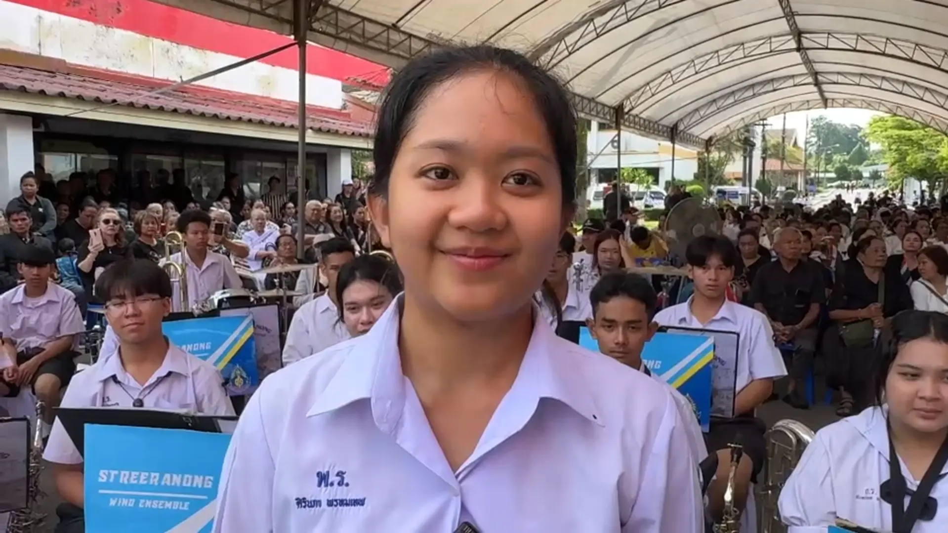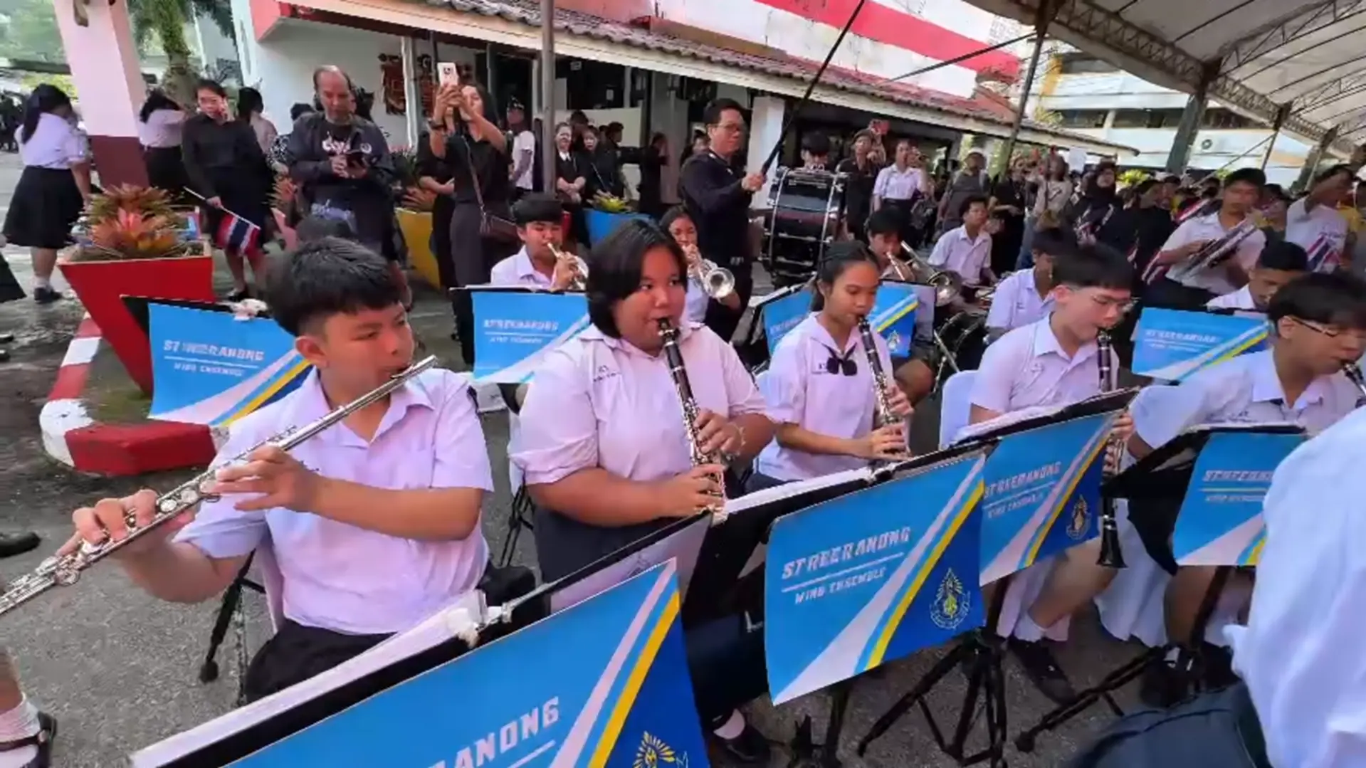 เมื่อ พลโทบุญสิน เดินทางไปถึง วงโยธวาธิตของโรงเรียนสตรีระนอง ได้บรรเลงเพลงบ้านเกิดเมืองนอน โดยมีเด็กนักเรียนและผู้ร่วมงานร่วมร้องเพลงบ้านเกิดเมืองนอนอย่างพร้อมเพรียง จากนั้น พลโทบุญสิน ได้เดินไปทักทายเด็กนักเรียน ทำให้เด็กนักเรียนส่งเสียงกรี๊ดดังสนั่นเพราะความดีใจ พร้อมโบกสะบัดธงชาติไทยที่อยู่ในมือเพื่อให้กำลังใจ พลโทบุญสิน และก่อนที่ พลโทบุญสิน จะบรรยายพิเศษ เด็กนักเรียนและผู้ร่วมงานพากันยืนสงบนิ่งเพื่อแสดงถวายความอาลัยถวายแด่ สมเด็จพระนางเจ้าสิริกิติ์ พระบรมราชินีนาถ พระบรมราชนนีพันปีหลวง 93 วินาที จากนั้นจึงมีการเปิดคลิปวิดีโอ เพลงส่งนางฟ้ากลับสวรรค์ เพื่อสำนึกในพระมหากรุณาธิคุณของ พระบรมราชนนีพันปีหลวง