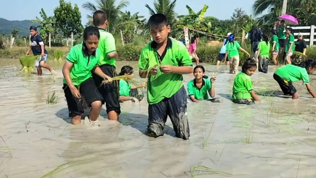 ยุวเกษตรกรอำเภอเมืองสงขลา ร่วมลงแขกดำนา เรียนรู้วิถีชาวนาตามปรัชญาเศรษฐกิจพอเพียง