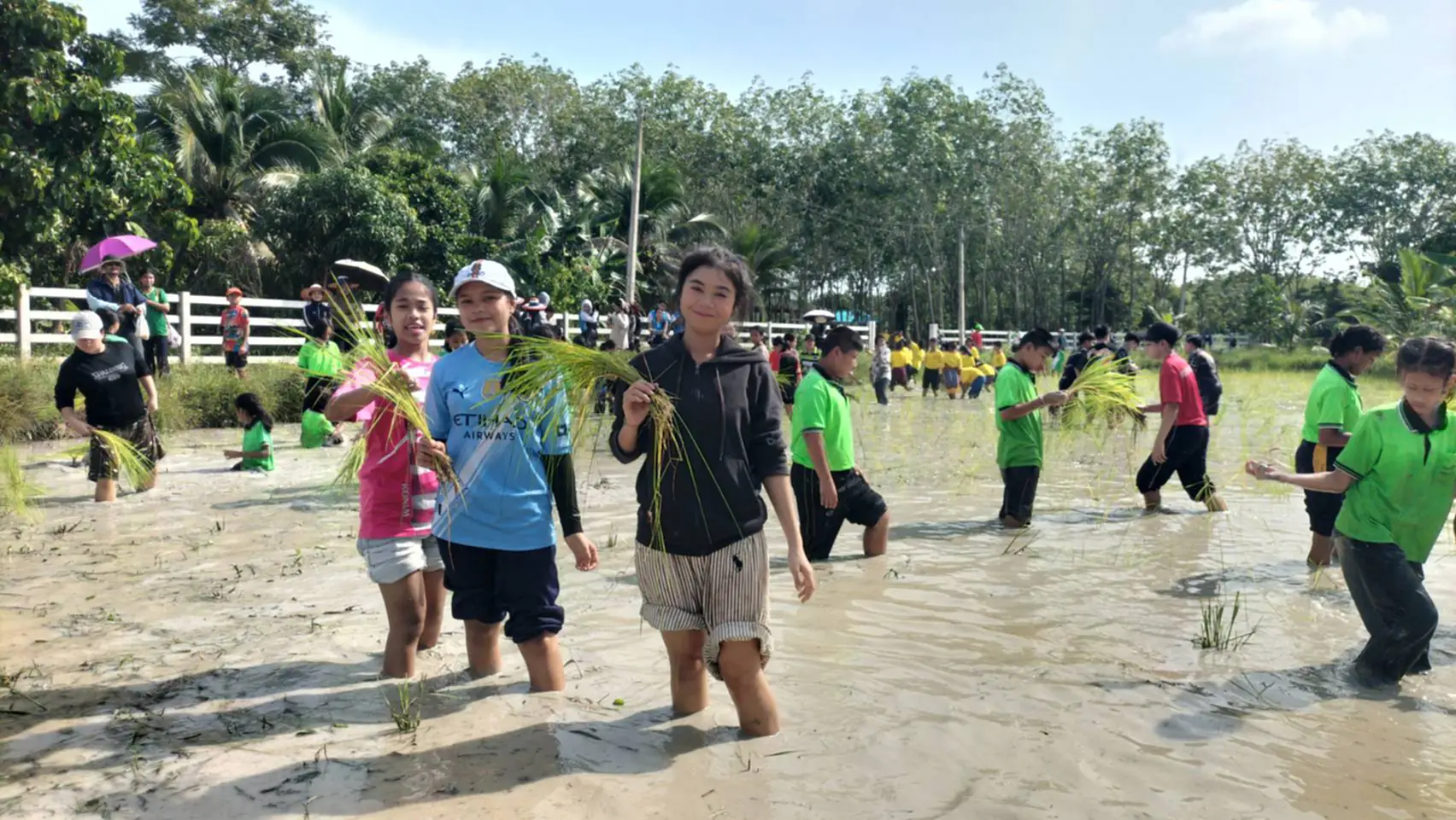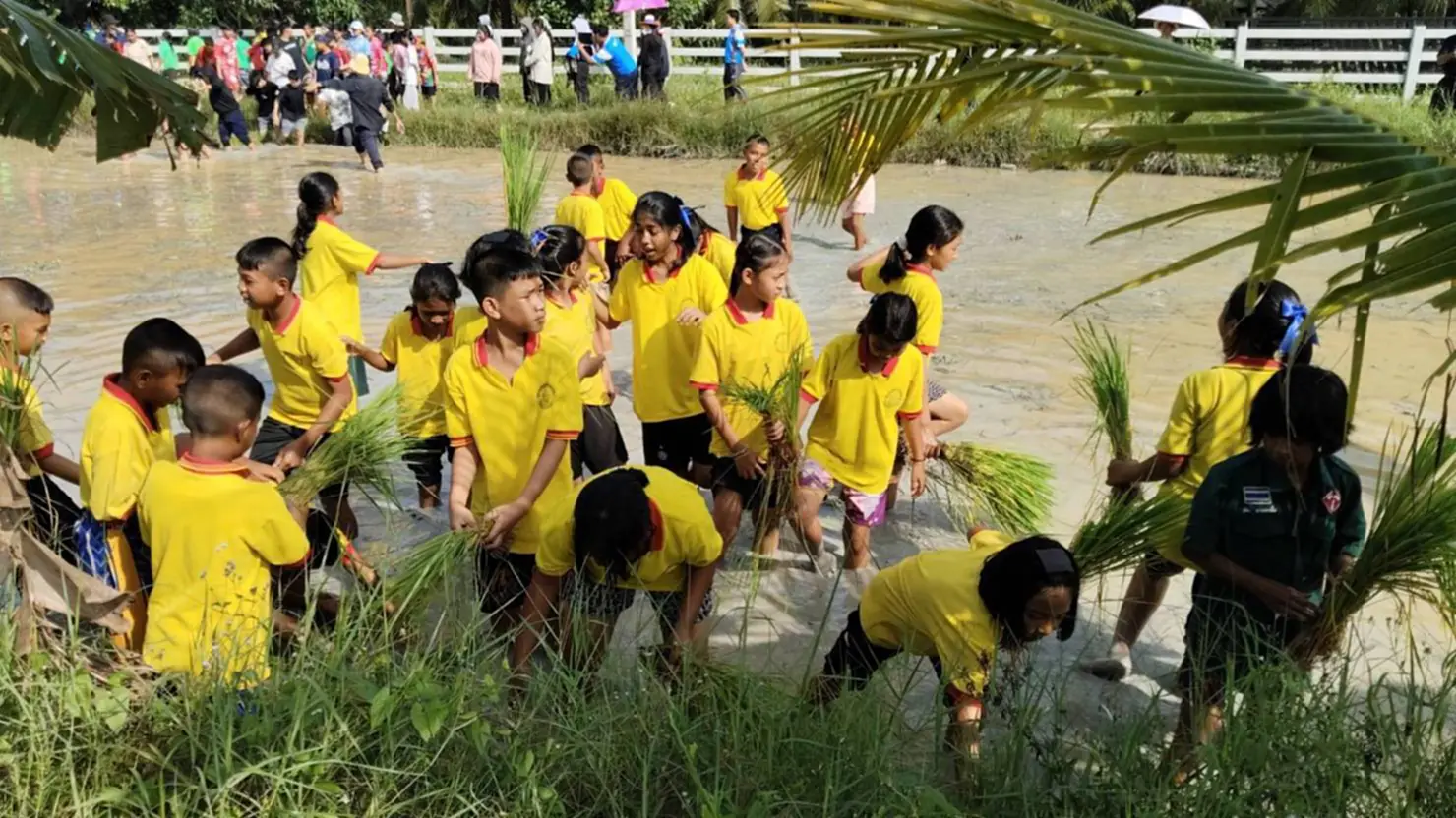 แม้เด็กนักเรียนมาจากหลายโรงเรียนและพื้นที่ต่างกัน แต่วันนี้พวกเขารวมใจเป็นหนึ่งเดียว จับมือกันลงแขกดำนา เรียนรู้วิถีการทำนาแบบดั้งเดิม และเพลิดเพลินกับการเรียนรู้นอกห้องเรียน ซึ่งกิจกรรมลงแขกดำนาของยุวเกษตรกรอำเภอเมืองสงขลานี้จัดขึ้นเป็นประจำทุกปี นับเป็นปีที่ 7 เพื่อส่งเสริมให้เยาวชนคนรุ่นใหม่เห็นคุณค่าของอาชีพการเกษตรและสืบสานวัฒนธรรมดั้งเดิมต่อไป