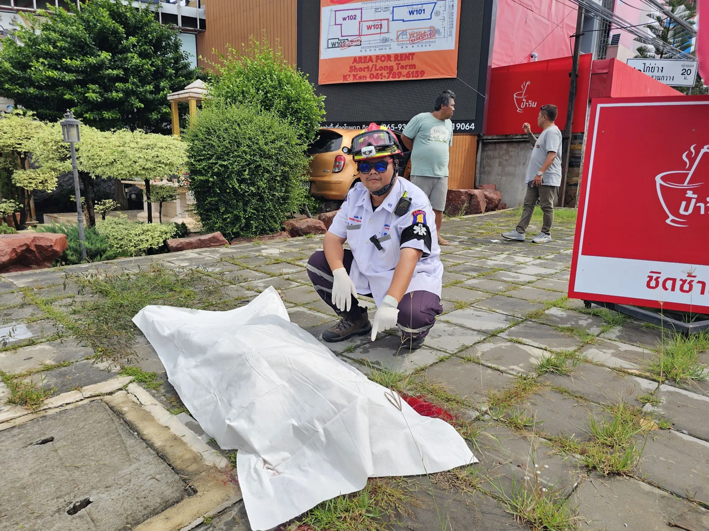 ที่เกิดเหตุพบรถเก๋ง นิสสัน สีส้ม  ในสภาพพุ่งขึ้นไปค้างอยู่บนกำแพงร้านริมถนน ภายในรถพบ นางสาวกัลยา อายุ 32 ปี คนขับ นอนอยู่ในอาการตกใจ มีอาการเจ็บปวดตามร่างกายจากแรงกระแทก ห่างออกไปประมาณ 5 เมตร บนฟุตบาท พบศพ นายพรเทพ อายุ 47 ปี นอนจมกองเลือด สภาพศีรษะกระโหลกแตก ใกล้กันพบรถจักรยานยนต์ ยามาฮา ฟีโน่  ของผู้ตาย ติดอยู่ใต้ท้องรถกระบะที่จอดอยู่ริมทาง สภาพพังเสียหาย