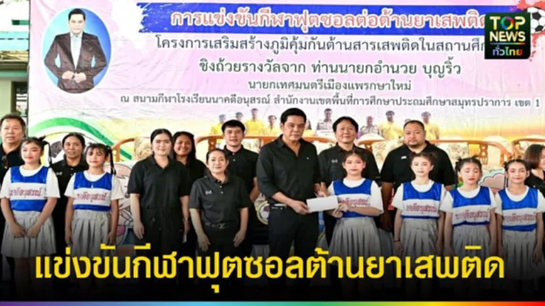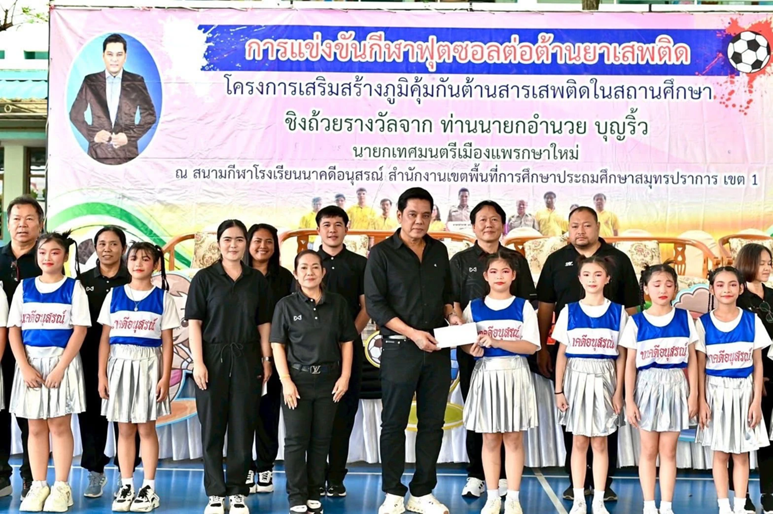 ผู้สื่อข่าวรายงานว่า เมื่อวันพุธที่ 12 พฤศจิกายน 2568 ที่สนามกีฬาโรงเรียนนาคดีอนุสรณ์ ต. แพรกษา อ.เมือง จ.สมุทรปราการ คณะผู้บริหารโรงเรียนนาคดีอนุสรณ์ พร้อมด้วย คณะครู นักเรียน จัดกิจกรรมการแข่งขันกีฬาฟุตซอลต่อต้านยาเสพติด ประจำปี 2568 ด้วยนางสาวศศิวิมล อั๋งสกุล ผู้อำนวยการโรงเรียนนาคดีอนุสรณ์ ตระหนักเห็นถึงความสำคัญโทษของยาเสพติดที่กำลังแพร่ระบาดในหลายพื้นที่ และเพื่อเป็นการป้องกันการแพร่ระบาดในสถานศึกษา