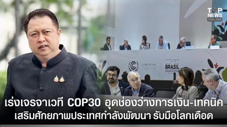 วันที่ 13 พฤศจิกายน 2568 นายสุชาติ ชมกลิ่น รองนายกรัฐมนตรี และรัฐมนตรีว่าการกระทรวงทรัพยากรธรรมชาติและสิ่งแวดล้อม เปิดเผยว่า การประชุมรัฐภาคีกรอบอนุสัญญาสหประชาชาติว่าด้วยการเปลี่ยนแปลงสภาพภูมิอากาศ สมัยที่ 30 (COP 30) และการประชุมอื่นที่เกี่ยวข้อง ที่จัดขึ้น ณ เมืองเบเล็ง สหพันธ์สาธารณรัฐบราซิล ได้ผ่านมาเป็นวันที่ 3 ซึ่งคณะผู้แทนไทยโดยกรมการเปลี่ยนแปลงสภาพภูมิอากาศและสิ่งแวดล้อม ในฐานะหน่วยประสานงานกลางของประเทศภายใต้กรอบอนุสัญญาฯ พร้อมทั้งผู้แทนจากหน่วยงานที่เกี่ยวข้อง เข้าร่วมเจรจาอย่างต่อเนื่อง โดยมีความก้าวหน้าสำคัญด้านการปรับตัวต่อการเปลี่ยนแปลงสภาพภูมิอากาศ ดังนี้