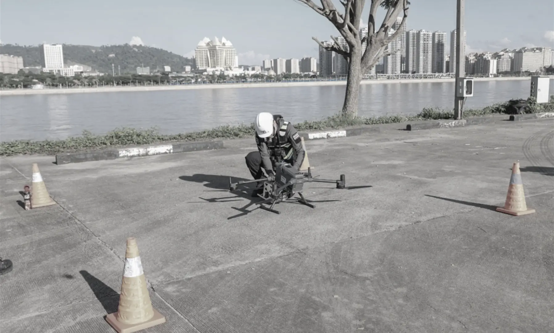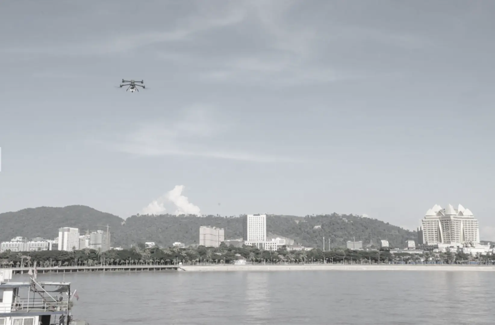 จุดที่สอง บินโดรนตรวจวัดสัญญาณโทรศัพท์เคลื่อนที่ฝั่งตรงข้ามคิงส์โรมัน อ.เชียงแสน ซึ่งเป็นพื้นที่เขตเศรษฐกิจพิเศษสามเหลี่ยมทองคำ