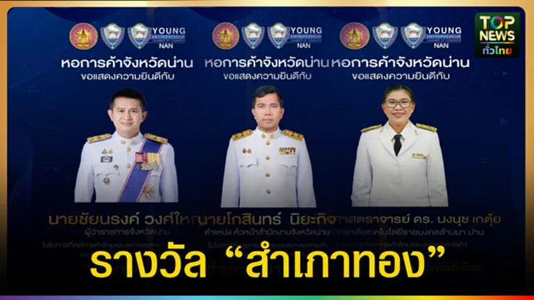 จังหวัดน่าน สร้างชื่อเสียงอีกครั้งบนเวทีระดับชาติ หลังคว้า 3 รางวัลใหญ่จากหอการค้าไทยและสภาหอการค้าแห่งประเทศไทย ในงานมอบรางวัล “สำเภาทอง” ประจำปี 2568 ซึ่งจัดขึ้นเพื่อเชิดชูผู้บริหารภาครัฐ ภาคเอกชน และบุคลากรผู้สร้างผลงานโดดเด่นด้านการขับเคลื่อนเศรษฐกิจและสังคมของประเทศ