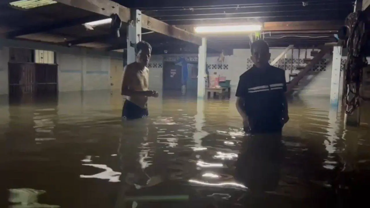 เมื่อวันที่ 14 พ.ย. 68 ผู้สื่อข่าวลงพื้นที่ชุมชนวัดตาล ม.1 ต.บางตะไน อ.ปากเกร็ด จ.นนทบุรี ซึ่งตั้งอยู่ติดริมแม่น้ำเจ้าพระยา พบว่าชาวบ้านกำลังเผชิญกับสถานการณ์น้ำท่วมต่อเนื่องยาวนานกว่า 2 เดือน ระดับน้ำในชุมชนสูงเฉลี่ย 60–70 เซนติเมตร หลายบ้านถูกน้ำท่วมชั้นล่างจนไม่สามารถอยู่อาศัยได้ ต้องย้ายไปนอนบนชั้นสอง ขณะเดียวกันการเดินทางในชุมชนต้องใช้เรือเป็นหลัก ทั้งไปทำงาน ไปร้านค้า หรือแม้แต่เดินทางไปฟังสวดอภิธรรมที่วัด