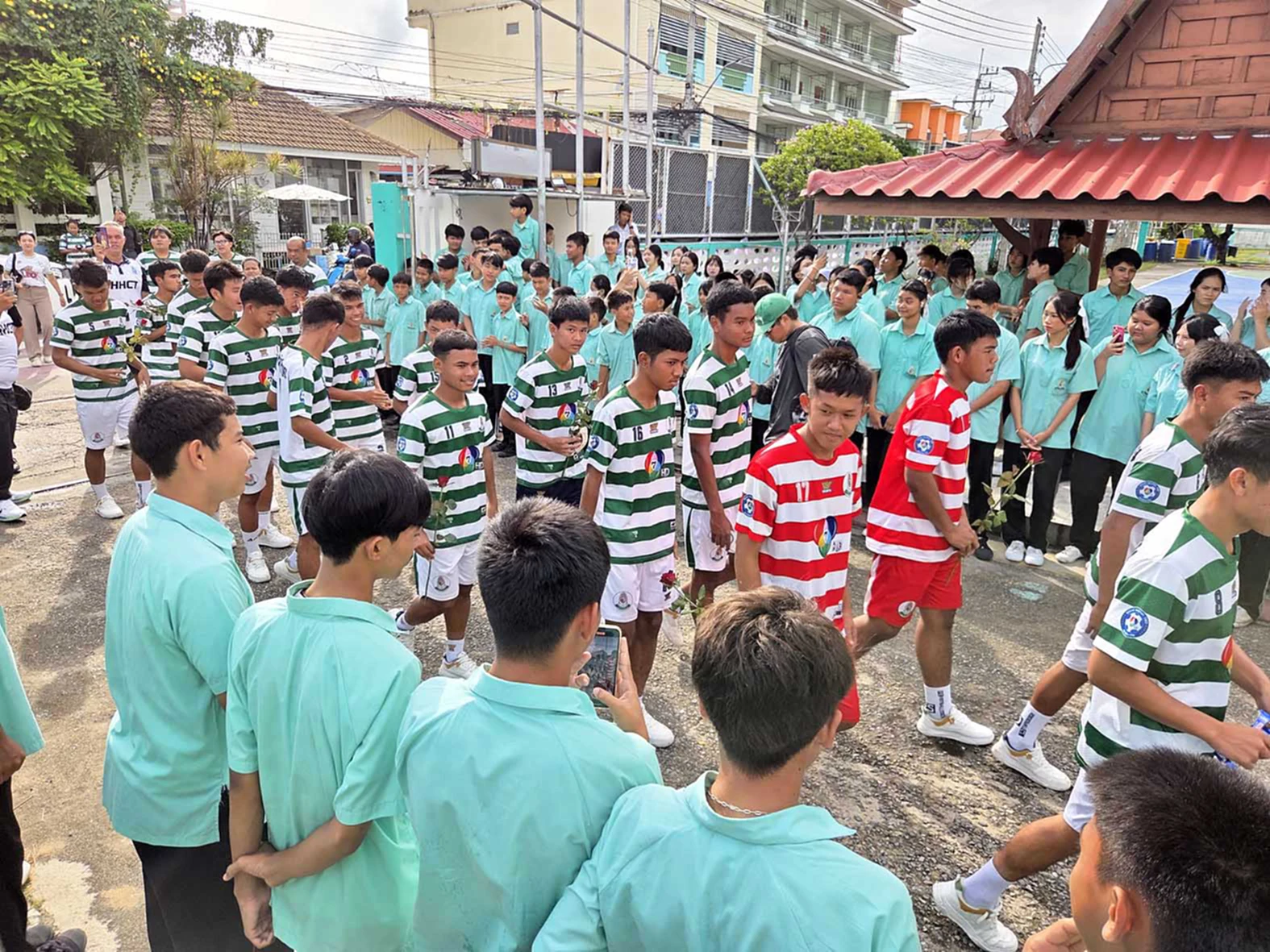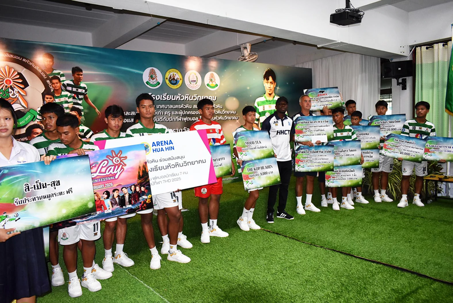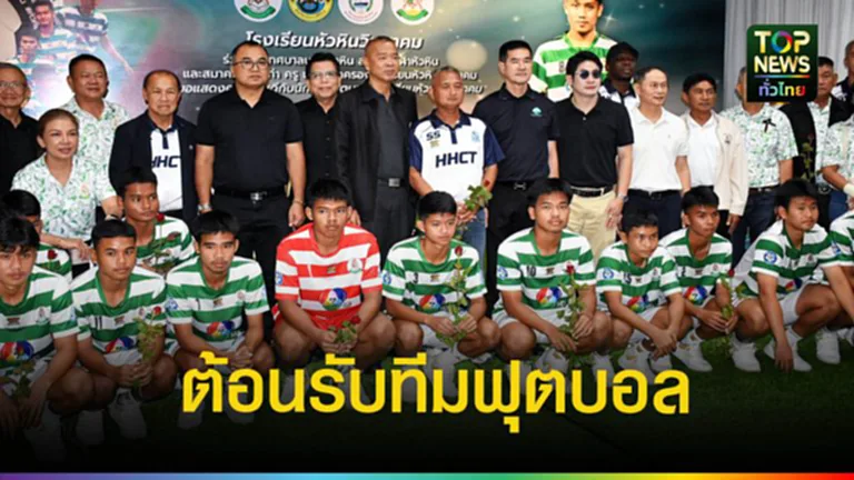 วันที่ 14 พ.ย. 2568 บรรยากาศที่โรงเรียนหัวหินวิทยาคม จังหวัดประจวบคีรีขันธ์ เมื่อวันที่ 14 พ.ย. 2568 เต็มไปด้วยความปลื้มปิติและความภาคภูมิใจ หลังคณะผู้บริหารระดับจังหวัด นำโดยนายประสูตร หอมบรรเทิง นายอำเภอหัวหิน, นายนพพร วุฒิกุล นายกเทศมนตรีนครหัวหิน, พล.ต.ท.ดำรงศักดิ์ ทองงามตระกูล นายกสมาคมกีฬาหัวหิน และคณะผู้บริหารโรงเรียน พร้อมผู้ปกครองและนักเรียน ร่วมต้อนรับและมอบช่อดอกไม้แสดงความยินดีแก่ทีมฟุตบอล “นักเตะเขียวขาว” โรงเรียนหัวหินวิทยาคม ที่สามารถทำผลงานคว้าอันดับที่ 4 ในการแข่งขัน “ฟุตบอลนักเรียน 7 คน แชมป์กีฬา 7HD แชมเปียน คัพ 2025” ซึ่งจัดขึ้นที่สนามศุภชลาศัย กรุงเทพมหานคร เมื่อวันที่ 8 พฤศจิกายนที่ผ่านมา โดยยังได้รับเงินสนับสนุนจากหลายภาคส่วนเป็นกำลังใจให้ทีมรวมกว่าแสนบาท