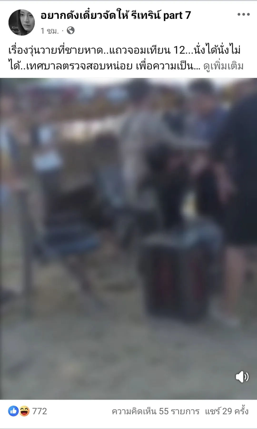 เพจอยากดังเดียวจัดให้ รีเทริน์ part7 ได้แชร์คลิปความยาวประมาณ 04.48 นาที ที่มีกลุ่มชายฉกรรจ์พยายามรุมทำร้ายหนุ่มที่มานั่งบริเวณชายหาดจอมเทียน และมีคำบรรยายว่า “เรื่องวุ่นวายที่ชายหาด..แถวจอมเทียน 12…นั่งได้นั่งไม่ได้..เทศบาลตรวจสอบหน่อย เพื่อความเป็นธรรมทั้งสองฝ่าย ผู้ใช้เฟซร้องว่า…ตลาดใหญ่มาก #จอมเทียน12 เป็นแบบนี่ใครจะอยากไปนังตลาด มีอะไรบอกกันดีๆก็ได้ไม่ใช้มาถึงโวยวายนูนนี่นัน ทุกคนเขาก็เป็นลูกค้าในตลาดกันทังนันนังชายหาดเดินซื้อของกินกันตลอดเจอแบบนี่บายๆตลาดใหญ่มาก ดันให้ถึงผู้ใหญ่ช้วยมาดูด้วย พัทยามีแต่มาเฟียเนาะเสียภาพลักหมดเป็นแบบนี่ใครจะอยากมาเทียวอันตราย #มาเฟียพัทยา -เอาจริงๆนะเดินมาบอกดีๆก็ได้วันนันทุกคนทังยกมือไหว้ขอโทษทุกอย่างทีผิดไปนังในตลาดเขาชาตแบตตารี่ นางก็ไม่จบโวยว้ายนูนนี่นัน โยนเก้าอี้โยนโทรน้องอีกคนจนหน้าจอแตก มาก็เขาไปมีเรื่องกลับนาง นางเรียกตำรวจมา เครียกันก็คิดว่าจบละ วันนี้พาพวกมาลุมทำร้าย ขอบคุณคลิปข่าว ล่าสุดวันนี้ ( 14 พ.ย.68 ) ผู้สื่อข่าวได้ลงพื้นที่ไปหาข้อมูลเกี่ยวกับเหตุการณ์ดังกล่าว