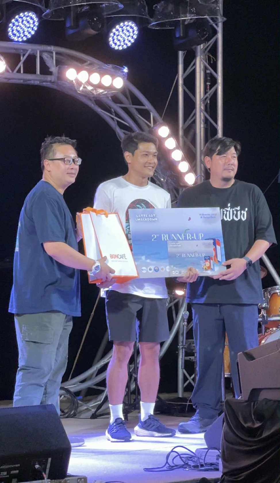 บรรยากาศริมชายหาดสุดคึกคักในงาน Chonburi Coffee on The Beach ที่รวบรวมบาริสต้าฝีมือเยี่ยมจากทั่วประเทศมาประชันศิลปะบนถ้วยกาแฟ ปีนี้ตัวแทนบาริสต้าหนุ่มจาก จังหวัดระยอง โชว์ฝีมือโดดเด่น คว้ารางวัล รองชนะเลิศอันดับที่ 2 การแข่งขันลาเต้อาร์ท ท่ามกลางเสียงเชียร์กึกก้องและบรรยากาศเป็นกันเองของคอกาแฟ