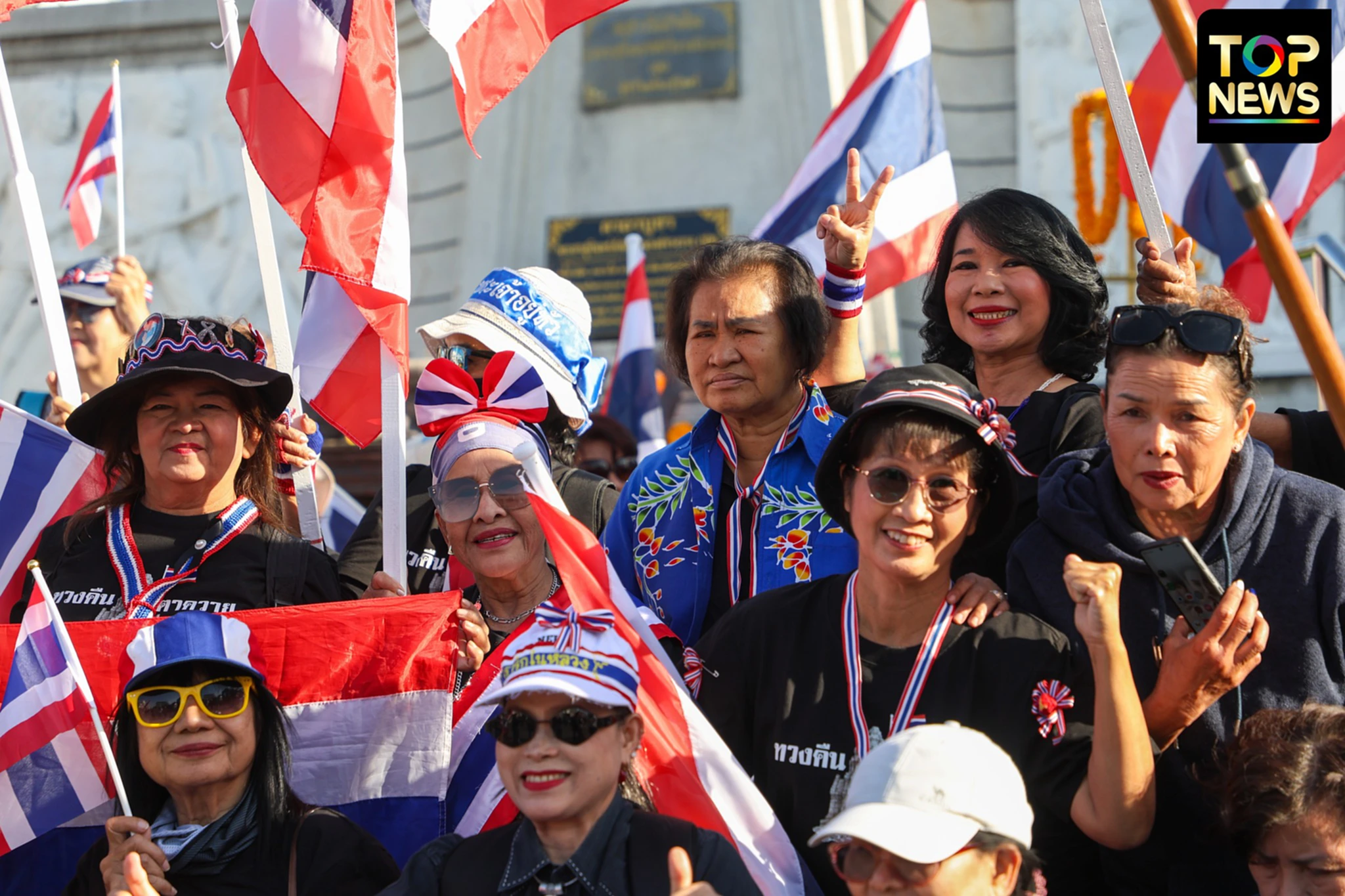 "กลุ่ม คปท." ถึงอนุสาวรีย์พระยาสุรินทรภักดีศรีณรงค์จางวาง จ.สุรินทร์ ตามนัดหมาย โบกสะพัดธงชาติไทย "ทวงคืนปราสาทตาควาย"