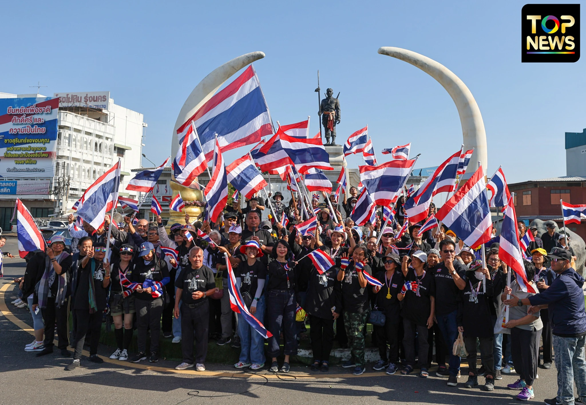 “กลุ่ม คปท.” ถึงอนุสาวรีย์พระยาสุรินทรภักดีศรีณรงค์จางวาง จ.สุรินทร์ ตามนัดหมาย โบกสะพัดธงชาติไทย “ทวงคืนปราสาทตาควาย”