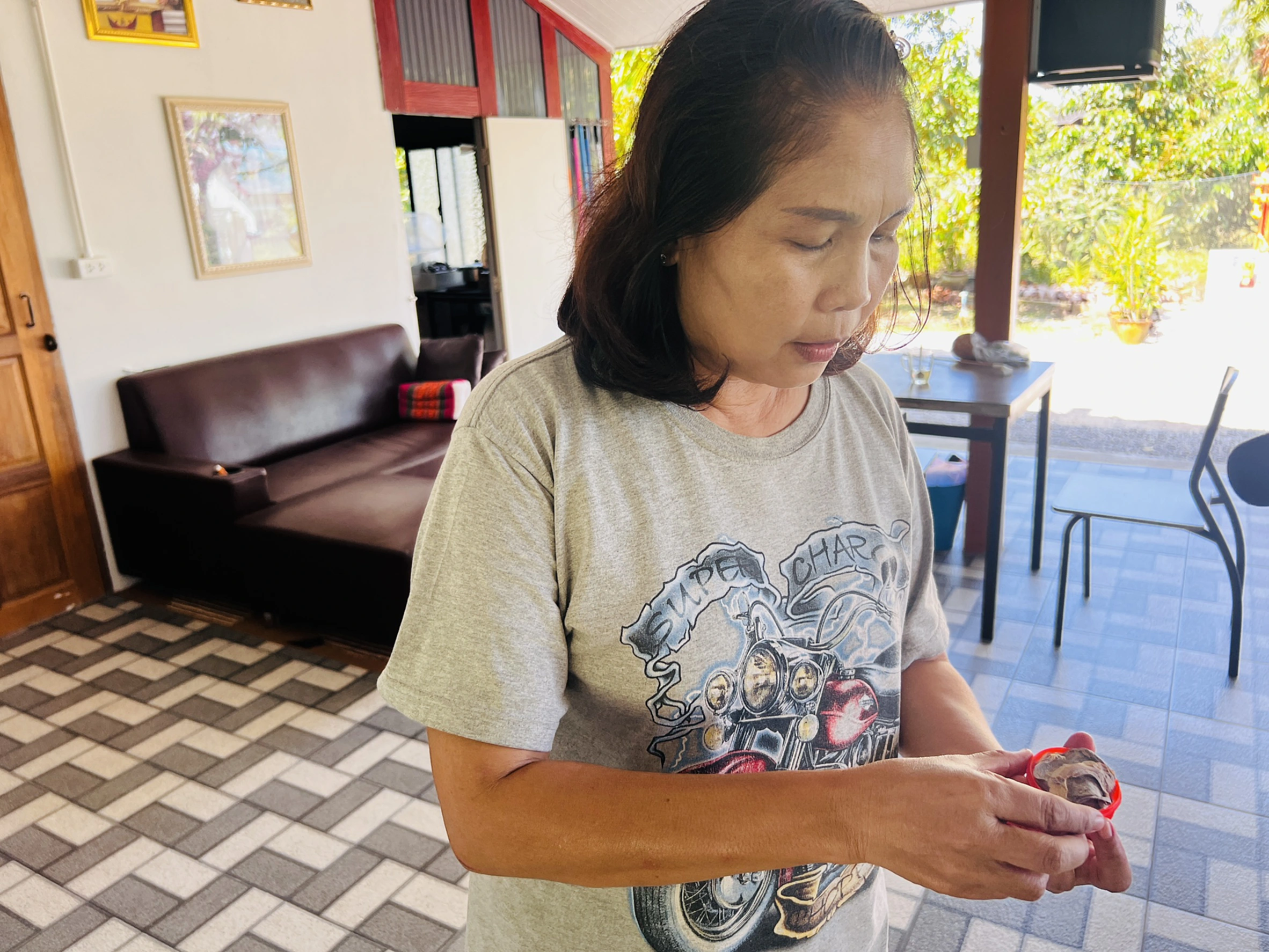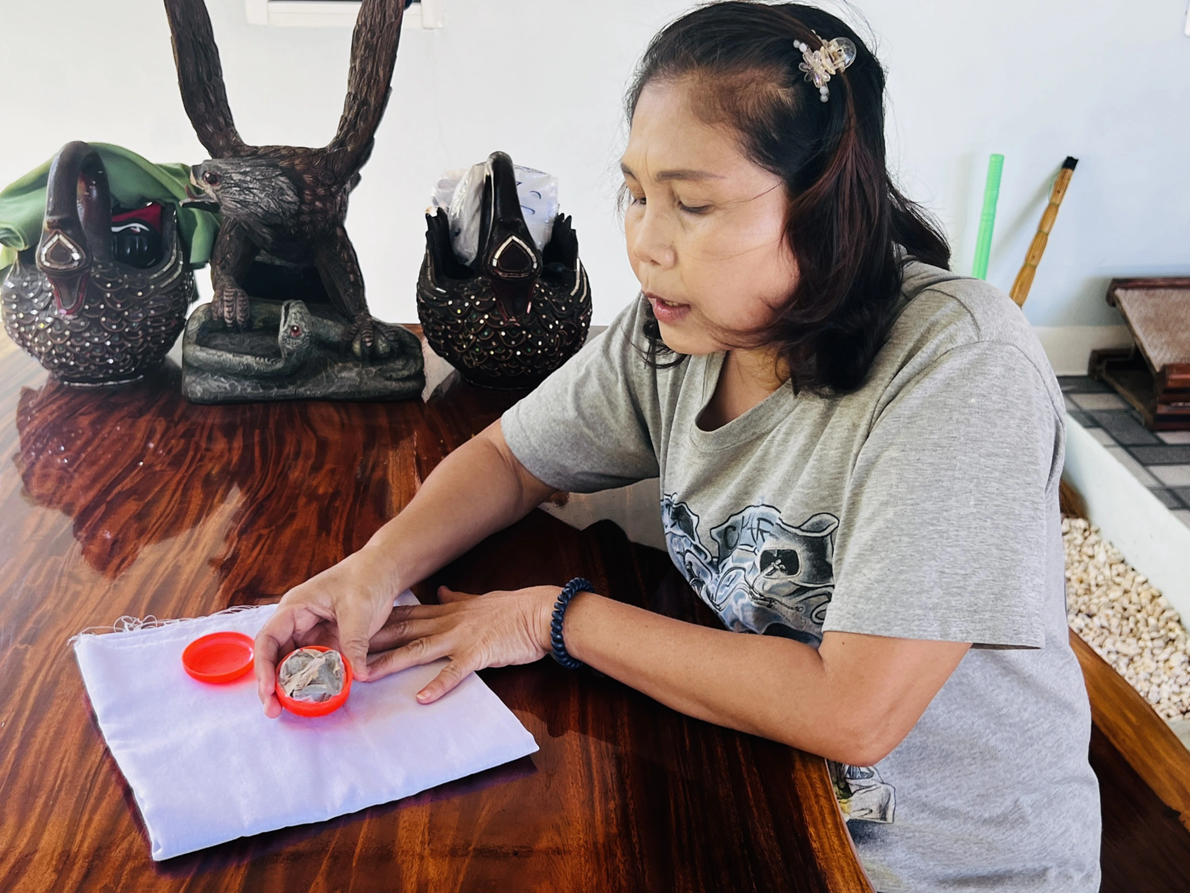 วันที่ 15 พ.ย. 2568 ผู้สื่อข่าวรายงานว่า ได้เดินทางไปพบนางสาวเพ็ญทิพย์ ตระหง่าน อายุ 52 ปี อาชีพทำสวนทุเรียนหมอนทอง อยู่บ้านเลขที่ 57/18 หมู่ 7 ต.นาโพธิ์ อ.สวี จ.ชุมพร โดยเจ้าตัวได้นำ “รกแมว” ซึ่งบรรจุอยู่ในตลับใส่ทองรูปประพรรณสีแดงออกมาให้ผู้สื่อข่าวชม ภายในพบรกแมวสภาพแห้ง มีความชุ่มเล็กน้อย ความยาวราว 5–6 เซนติเมตร แตกต่างจากตอนที่ได้รับมาแรก ๆ อย่างเห็นได้ชัด ทำให้ผู้สื่อข่าวต่างประหลาดใจไม่น้อย