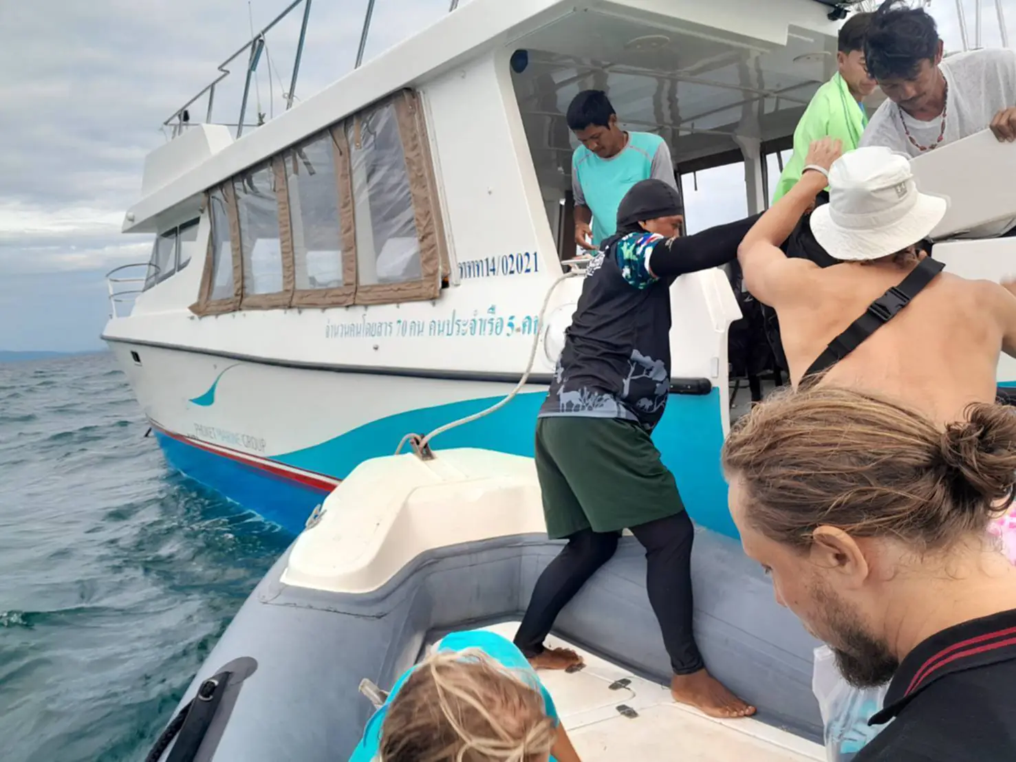กัปตันซึ่งสังเกตเห็นความผิดปกติได้อย่างรวดเร็ว ตัดสินใจหมุนเรือกลับฝั่งเกาะไม้ไผ่ทันที พร้อมขอความช่วยเหลือจากเจ้าหน้าที่อุทยานแห่งชาติหาดนพรัตน์ธารา–หมู่เกาะพีพี จนสามารถนำเรือเทียบชายฝั่งได้อย่างปลอดภัย จากนั้นประสานเรือใหญ่เข้ารับผู้โดยสาร โดยเจ้าหน้าที่อุทยานนำเรือตรวจการ 2 ลำ เข้าช่วยเคลื่อนย้ายผู้โดยสารทั้งหมดลงเรือยาง ก่อนส่งต่อขึ้นเรือใหญ่กลับภูเก็ตอย่างปลอดภัย