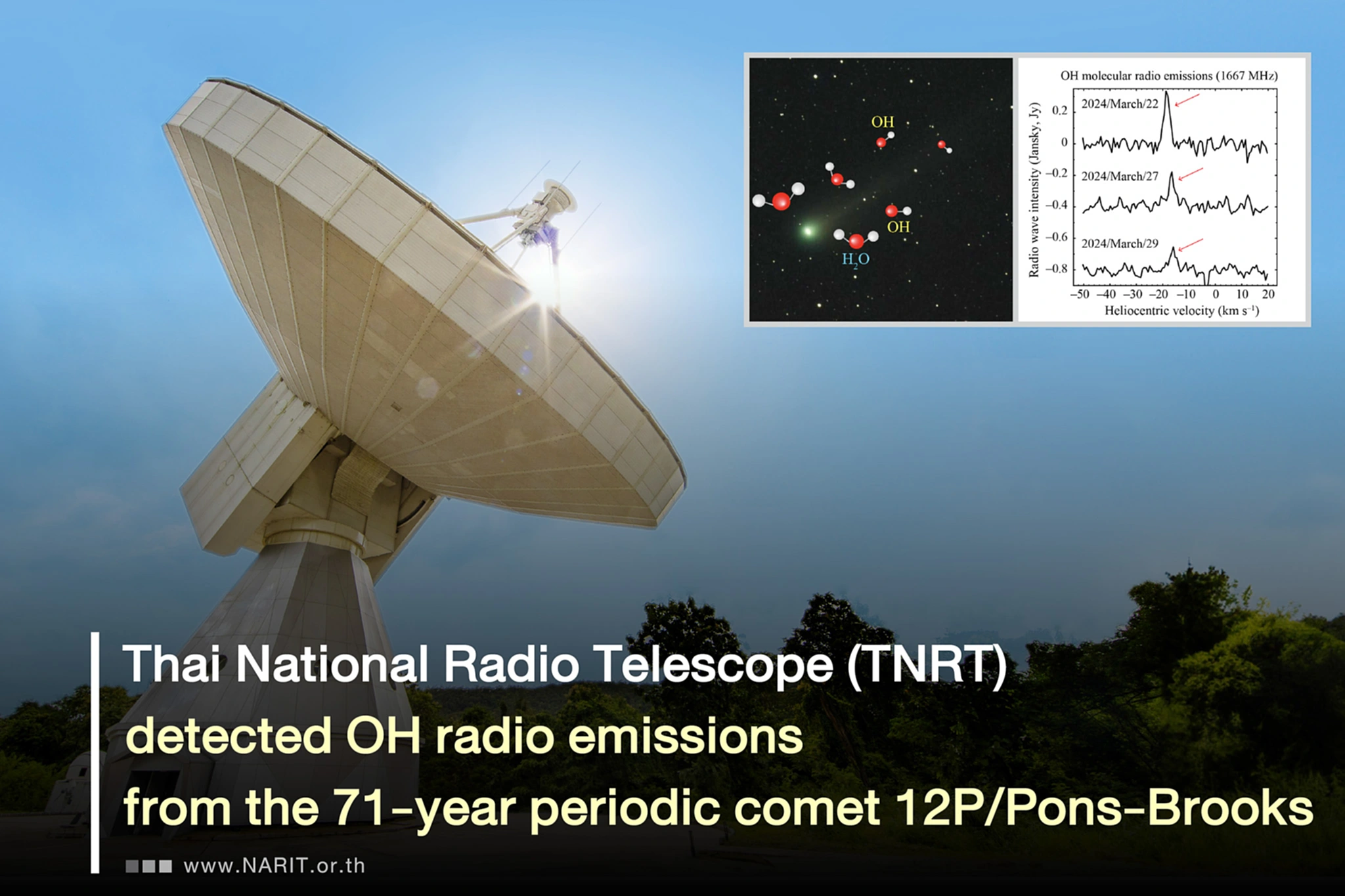 อ้างอิง N. Sakai, S. Poshyachinda, K. Sugiyama, W. Rujopakarn, et al., “Detection of OH Maser Emission in the 71 yr Periodic Comet 12P/Pons-Brooks Using the 40 m Thai National Radio Telescope”, 2025, Planetary Science Journal: https://iopscience.iop.org/article/10.3847/PSJ/ae0e19