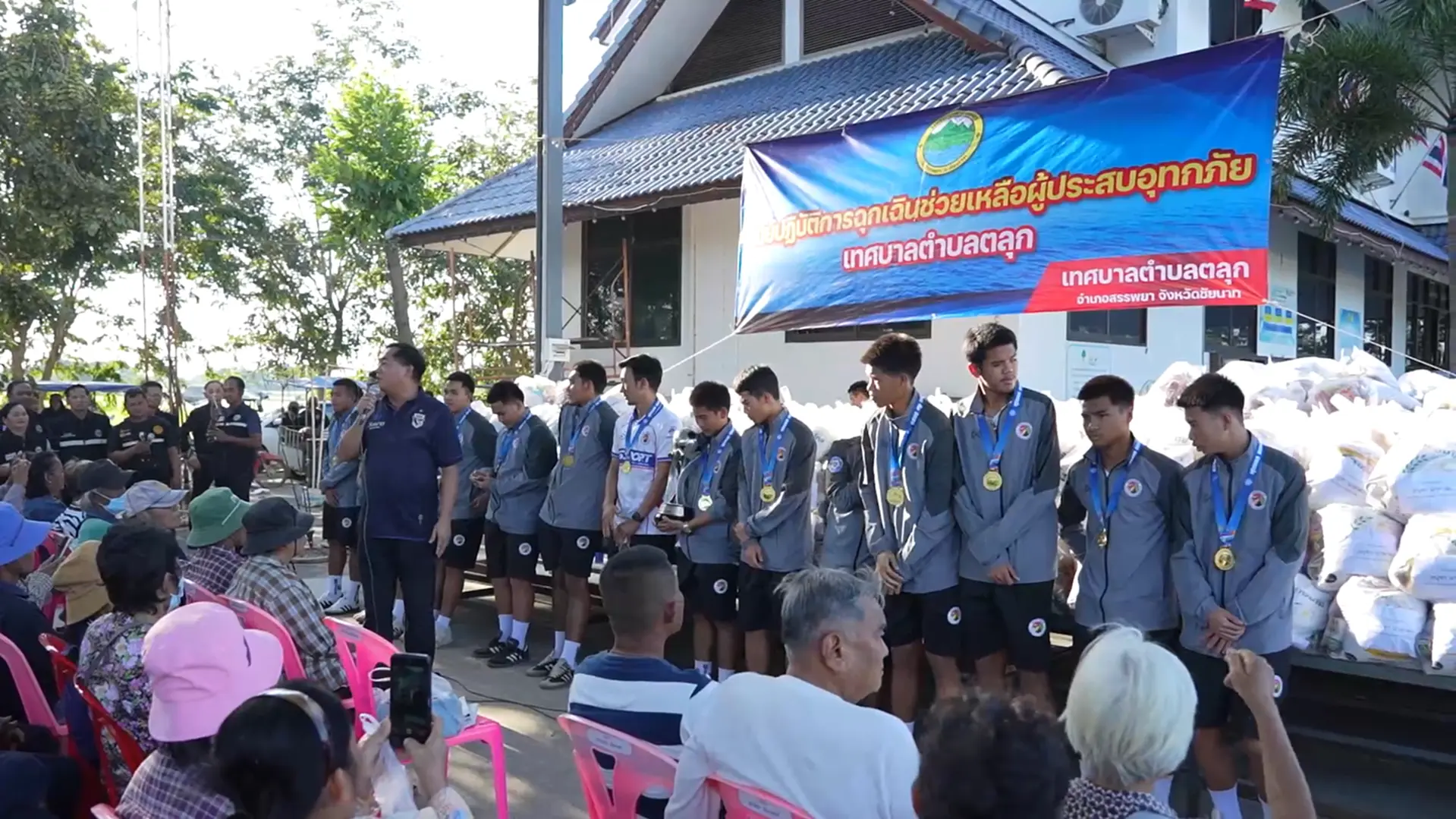 ซึ่งระหว่างพบปะให้กำลังใจผู้ประสบภัยชาวเทศบาลตำบลตลุก พี่น้องชาวชัยนาทต่างเข้ามาแสดงความยินดี พร้อมขอถ่ายรูปร่วมกับน้อง ๆ นักฟุตบอลอย่างเป็นกันเอง คึกครื้น