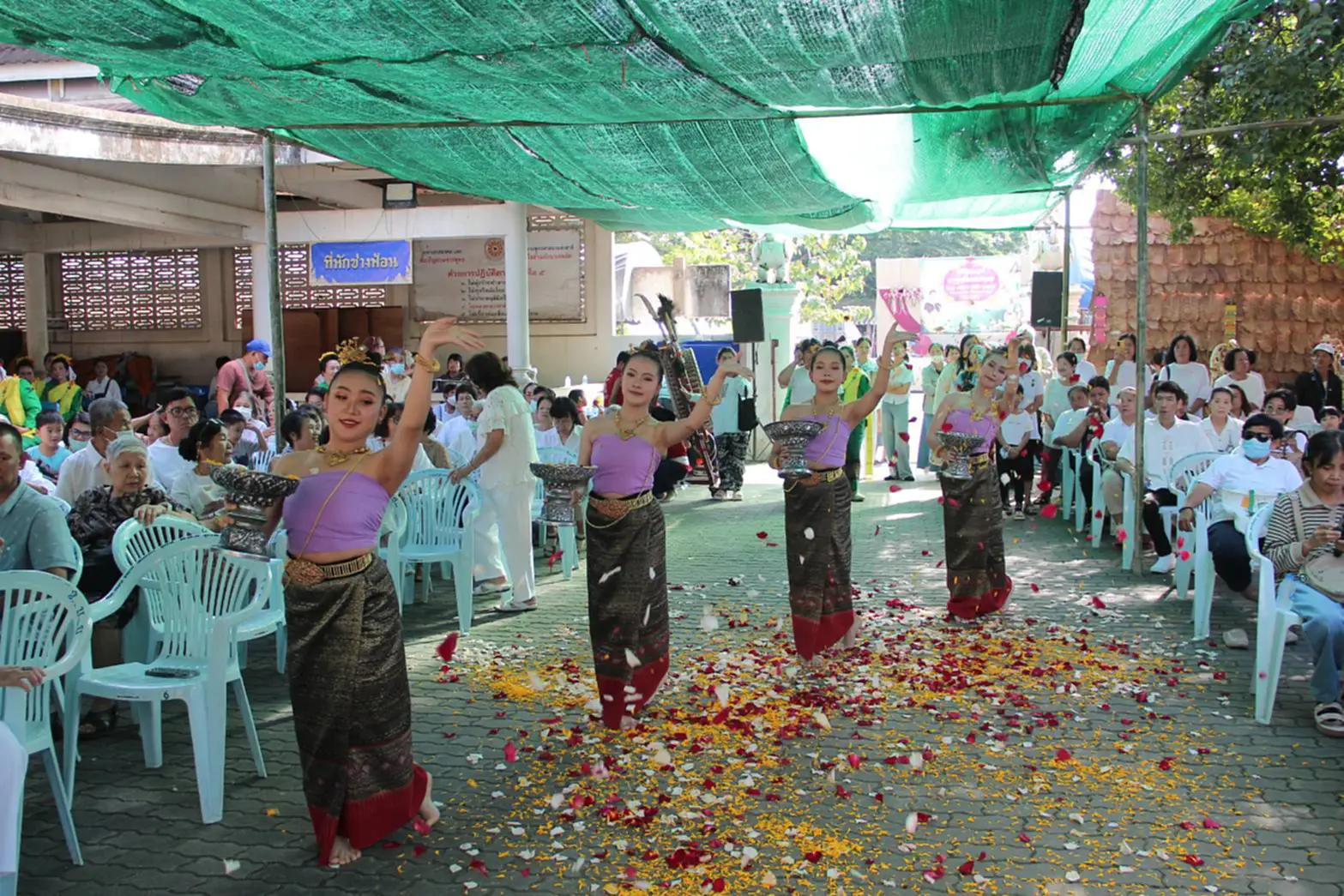 บรรยากาศภายในงานเป็นไปอย่างเรียบง่ายและอบอุ่น โดยในช่วงเช้ามีกิจกรรมถวายมุทิตาจิต การฟ้อนเล็บ การแสดงพิพาท และกิจกรรมตามประเพณี ก่อนเข้าสู่พิธีสวดมนต์ อาราธนาศีล และถวายจตุปัจจัยไทยธรรม เพื่อความเป็นสิริมงคลในการประกอบพิธี