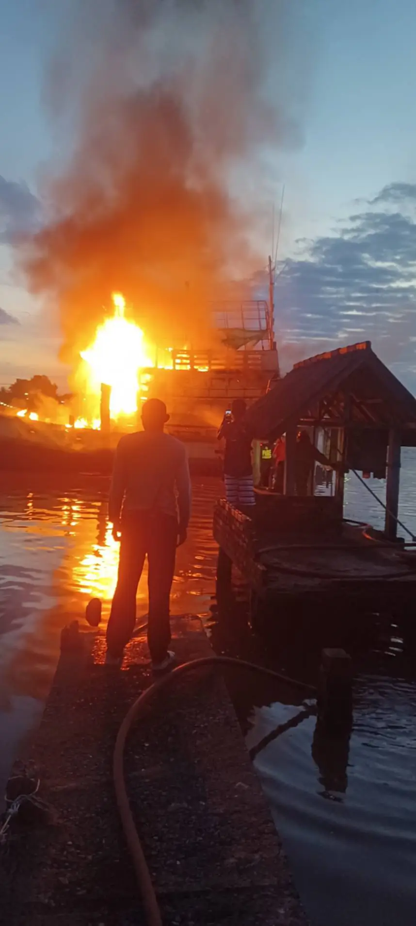 วันที่ 16 พ.ย. 2568 เจ้าหน้าที่กองป้องกันและบรรเทาสาธารณภัย เทศบาลเมืองปากพนัง ได้รับแจ้งเหตุเพลิงไหม้เรือประมงขนาดใหญ่ บริเวณท่าเทียบเรือบ้านล่าง เขตเทศบาลเมืองปากพนังฝั่งตะวันตก จึงประสานกำลังและลงพื้นที่ตรวจสอบร่วมกับเจ้าหน้าที่ตำรวจ สถานีตำรวจภูธรปากพนัง