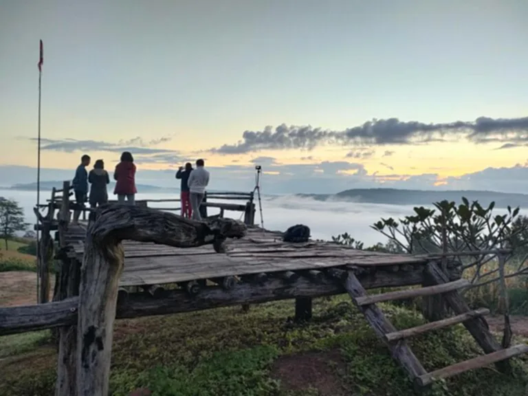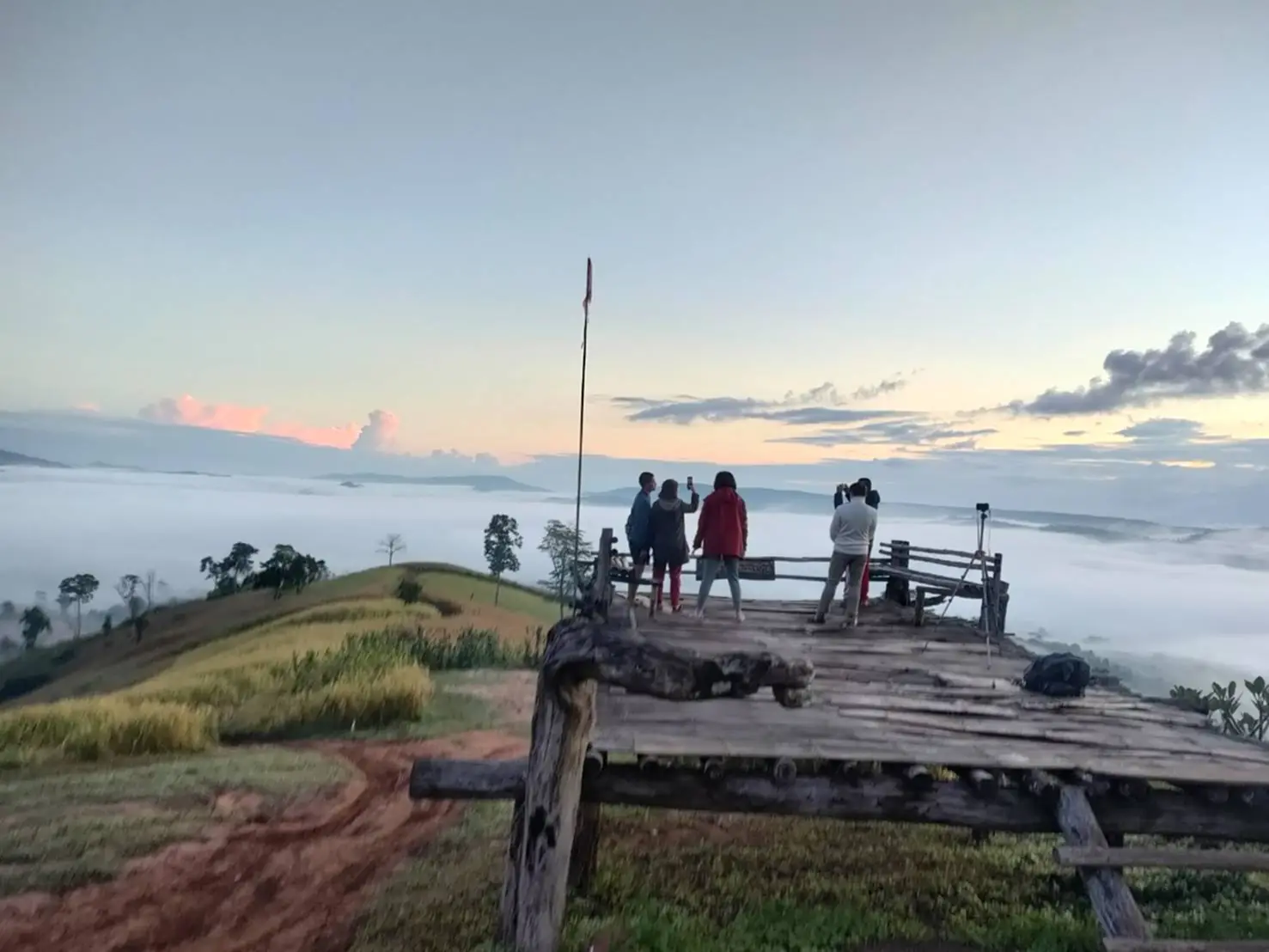 “นทท. ต้องบอกเลยว่าสวยมากไปชมวิวทะเลหมอกสวยๆ ที่ภูค้อ เราจะต้องไปด้านบนด้วยรถอีแต๊กของกลุ่มชาวบ้าน วิสาหกิจบ้านบุ่ง ที่มีไว้บริการนักท่องเที่ยวค่ะ โดยจะพาเราไต่ขึ้นยอดภูค้อไปยังจุดชมวิวระเบียงไม้ที่ชาวบ้านได้ไปช่วยกันสร้างขึ้น โดยเส้นทางที่ไปจะผ่านสวนไร่นาของชาวบ้าน โดยจะใช้เวลาเดินทางจากตัวอำเภอนาแห้ว ไปถึงจุดชมวิวประมาณ 15 นาที ระยะทางประมาณ 3 กิโลเมตร จุดชมทะเลหมอก อ.นาแห้ว ตลอดช่วงวันหยุดยาวมีนักท่องเที่ยวแห่มาใช้บริการรถอีแต๊กของชุมชนบ้านปากหมันและชุมชนบ้านบุ่งเป็นจำนวนมาก เพื่อขึ้นไปสัมผัสทะเลหมอก ชมพระอาทิตย์ขึ้น และธรรมชาติของทิวทัศน์งามในยามเช้า”