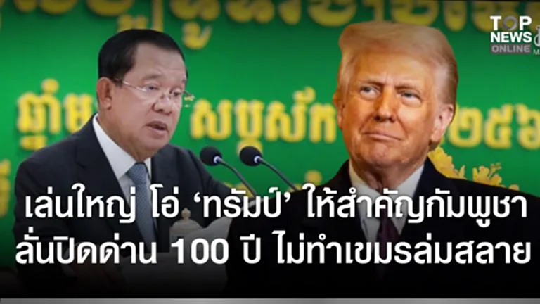 “ฮุน เซน” โผล่เล่นใหญ่ โอ่ “ทรัมป์” ให้สำคัญกัมพูชา โทรหา “ฮุน มาเนต” เสมอ ลั่นปิดด่าน 100 ปี ไม่ทำล่มสลาย ชาวเขมรไม่ต้องถึงแบนสินค้าไทย ฟุ้งสุดเร็ว ๆ นี้พร้อมส่งออกเสื้อกันกระสุน
