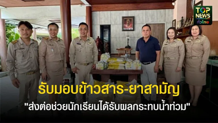 ว่าที่ร้อยตรี ดร.มนต์เมืองใต้ รอดอยู่ ผู้อำนวยการโรงเรียนราชินีบูรณะ และประธานเครือข่ายส่งเสริมประสิทธิภาพการจัดการมัธยมศึกษาจังหวัดนครปฐม พร้อมคณะผู้บริหาร เพื่อส่งต่อให้กับนักเรียนที่ได้รับผลกระทบจากสถานการณ์น้ำท่วม
