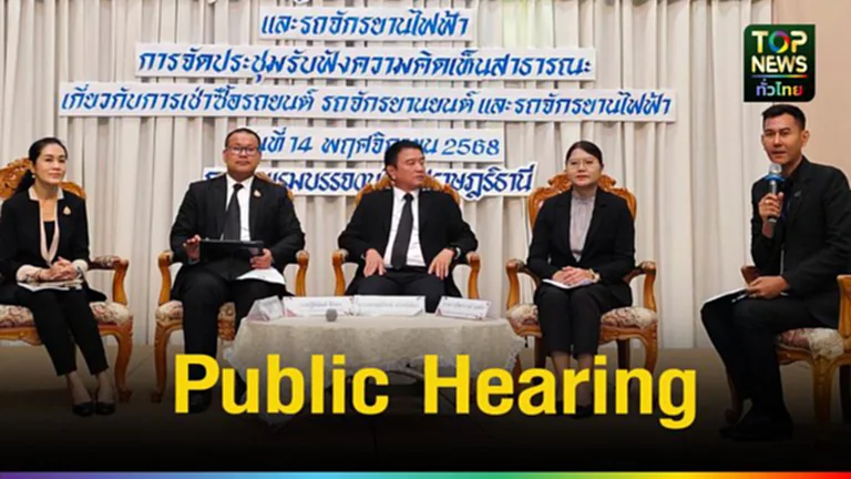 ผู้สื่อข่าวรายงานว่า เมื่อวันที่ 14 พ.ย. 2568 ที่ห้องแกรนด์บอลรูม โรงแรมบรรจงบุรี จ.สุราษฎร์ธานี สถาบันวิจัยและพัฒนา มหาวิทยาลัยราชภัฎสุราษฎร์ธานี จัดประชุมรับฟังความคิดเห็นสาธารณะ (Public Hearing) เกี่ยวกับการเช่าซื้อรถยนต์ รถจักรยานยนต์ และรถจักรยานไฟฟ้า เพื่อศึกษาและหาแนวทางแก้ไขปัญหาการคุ้มครองผู้บริโภค โดยมี นายฐิตินันท์ สิงหา รองเลขาธิการคณะกรรมการคุ้มครองผู้บริโภค เป็นประธาน และ ดร.สมปราชญ์ วุฒิจันทร์ รองอธิการบดีมหาวิทยาลัยราชภัฎสุราษฎร์ธานี กล่าวรายงาน พร้อมผู้แทนภาครัฐ เอกชน และสื่อมวลชนกว่า 150 คน ร่วมแลกเปลี่ยนความคิดเห็น