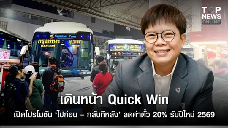 เริ่มแล้ว! “มัลลิกา” มอบ บขส. เดินหน้า Quick Win จัดโปรฯ “ไปก่อน – กลับทีหลัง” ลดค่าตั๋ว 20% ให้ประชาชนเดินทาง ช่วงเทศกาลปีใหม่ 2569 – Top News รายงาน