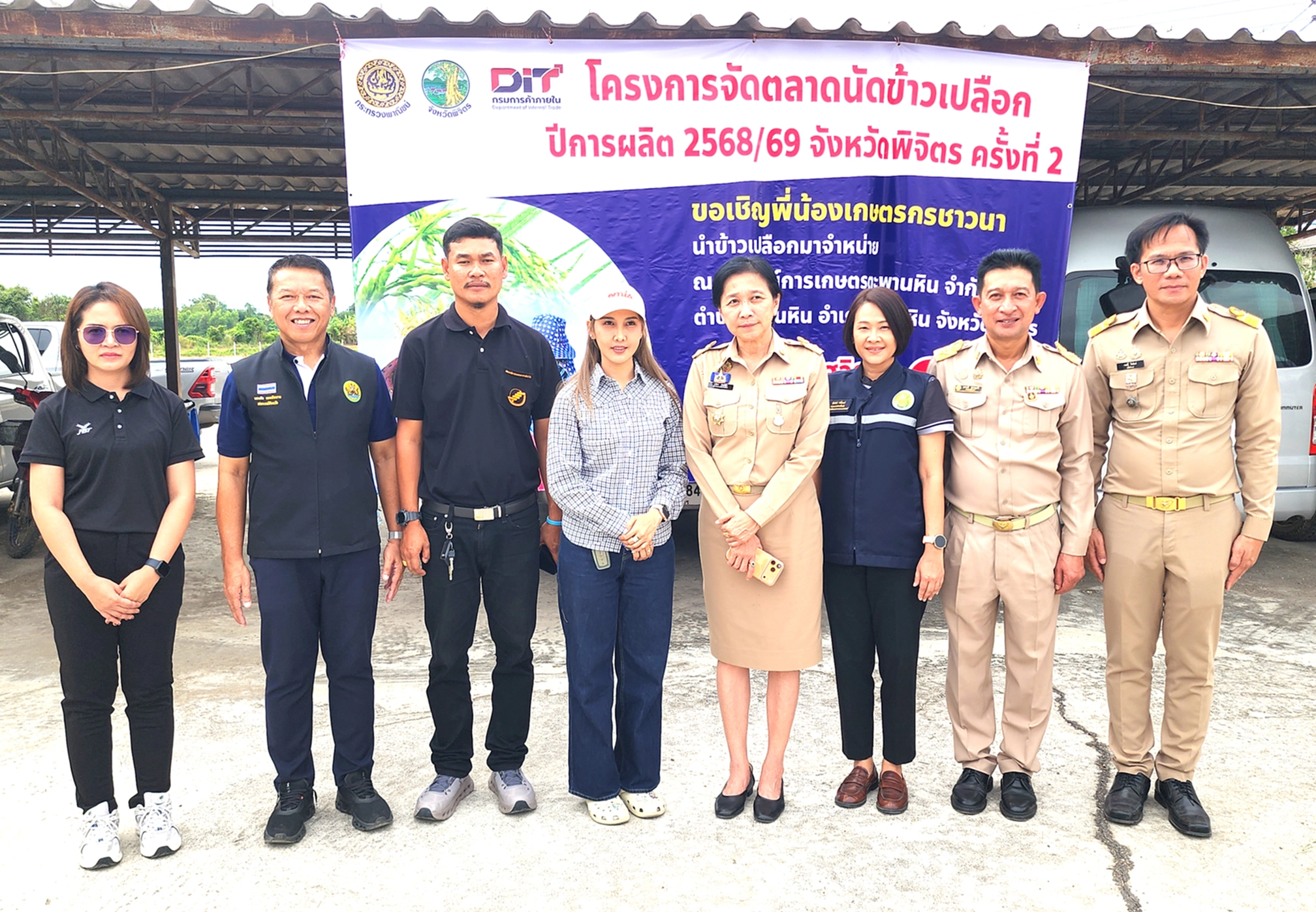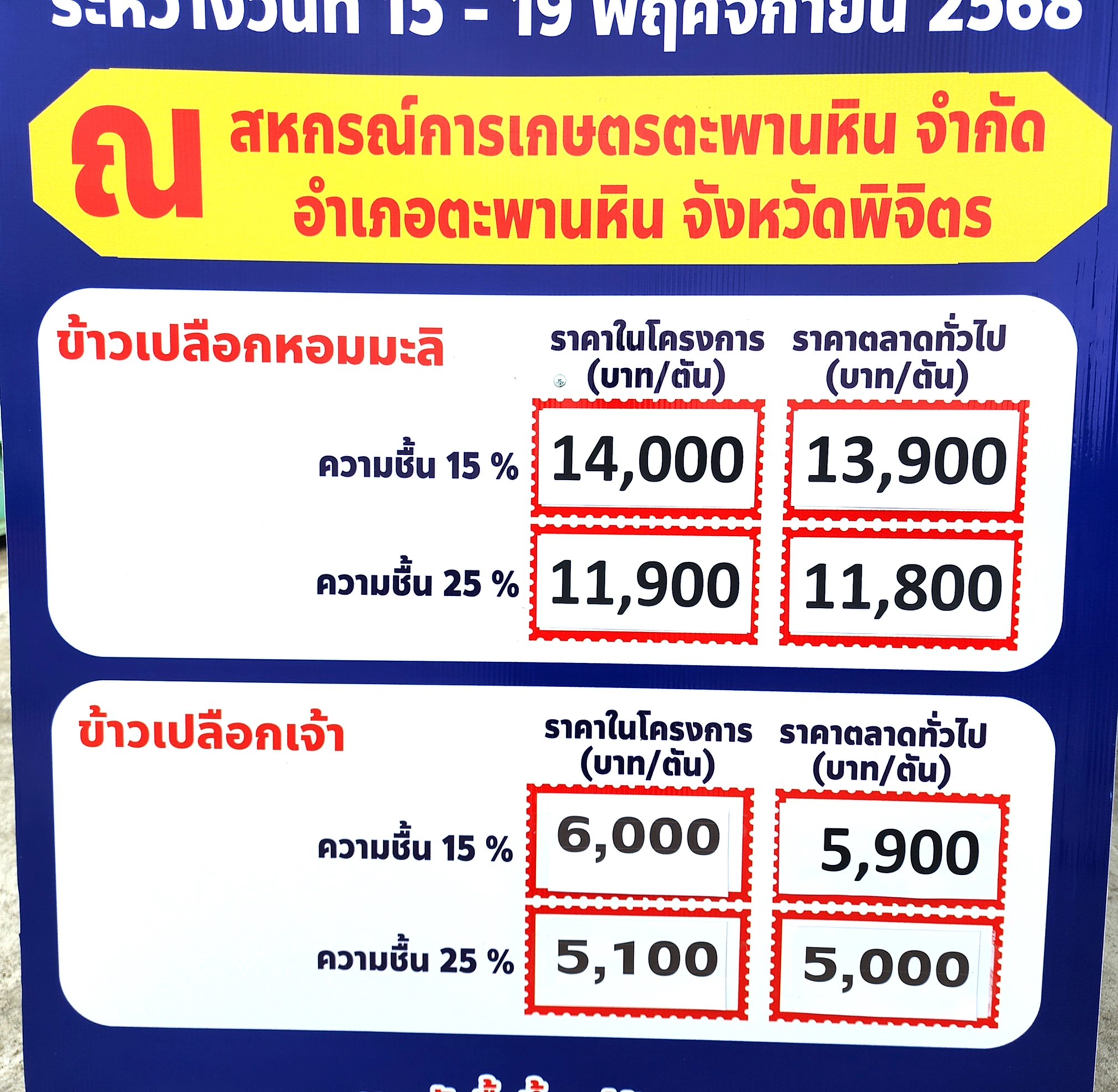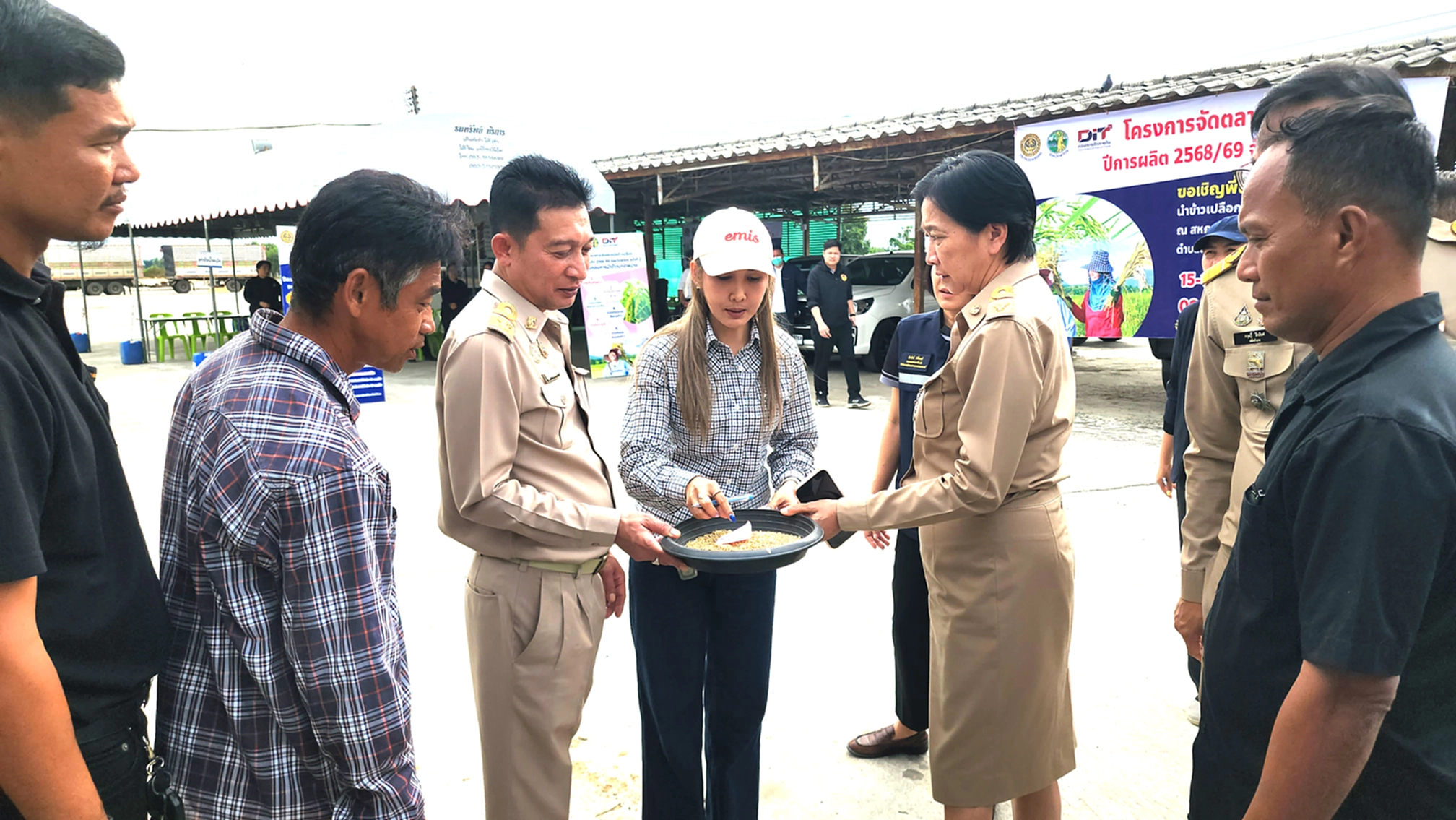 วันที่ 17 พฤศจิกายน 2568 นางสาวธนียา นัยพินิจ ผู้ว่าราชการจังหวัดพิจิตร ลงพื้นที่ตรวจเยี่ยมโครงการจัดตลาดนัดข้าวเปลือกปีการผลิต68/69ของจังหวัดพิจิตรที่สหกรณ์การเกษตรตะพานหิน จำกัด โดยมี นางสาวอุไรรัตน์ คำชื่นวงศ์ เกษตรและสหกรณ์จังหวัดพิจิตร, นายเอกวุฒิ ชุมวรฐายี พาณิชย์จังหวัดพิจิตร, นายกฤษฏิ์ สิทธิยศ ปลัดอำเภอ (เจ้าพนักงานปกครองชำนาญการพิเศษ) รักษาราชการแทน นายอำเภอตะพานหิน , ผู้จัดการสหกรณ์การเกษตรตะพานหิน ให้การต้อนรับ และดูบรรยากาศการรับซื้อข้าวเปลือกที่ สนง.พาณิชย์จังหวัดพจิตร จัดขึ้นในช่วงระหว่างวันที่ 15-19 พ.ย. 68 ซึ่งในแต่ละวันมีเกษตรกรเกี่ยวข้าวหอมมะลินำมาขายที่สหกรณ์การเกษตรตะพานหิน แห่งนี้วันละ 20-30 คันรถ ซึ่งมีพ่อค้าคนกลางจากโรงสีใหญ่มาคอยรับซื้อ โดยจ่ายเป็นเงินสด