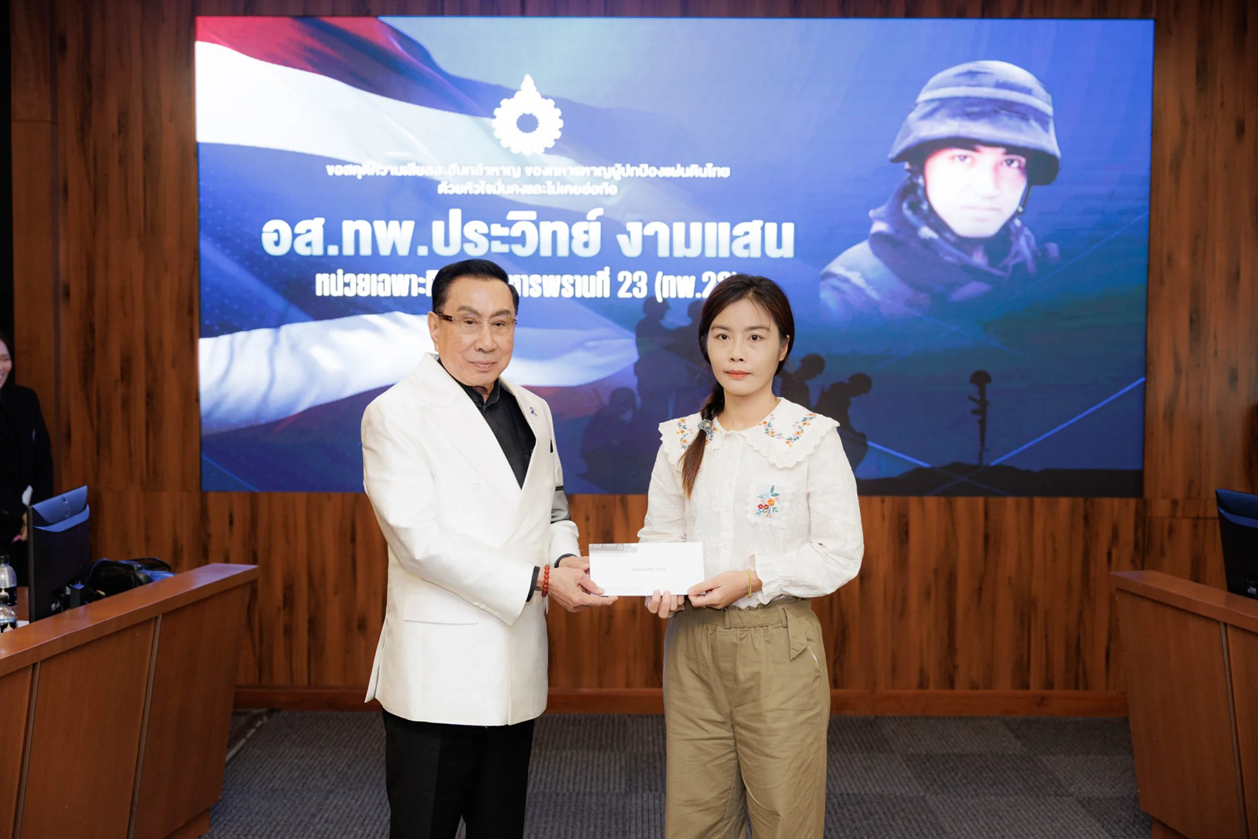 “แม้พวกเราจะไม่ได้อยู่แนวหน้า แต่กำลังใจและความช่วยเหลือที่มอบในวันนี้คือพลังสำคัญที่ทำให้ทหารสามารถปฏิบัติหน้าที่ได้อย่างเข้มแข็ง เพราะพวกเขารู้ว่าคนไทยทั้งประเทศยืนเคียงข้างเสมอ ในนามกองทัพบก ขอขอบคุณท่านอธิการบดี ดร.อาทิตย์ อุไรรัตน์ และคณะผู้บริหารมหาวิทยาลัยรังสิต ที่ให้การสนับสนุนและดูแลครอบครัวทหารผู้เสียสละ โดยเฉพาะผู้เสียชีวิต ผู้บาดเจ็บ และผู้พิการ ซึ่งกองทัพบกยืนยันว่าจะดูแลสิทธิและสวัสดิการของกำลังพลและทายาทอย่างเต็มที่ เพื่อให้สามารถดำเนินชีวิตต่อไปได้อย่างมั่นคง”