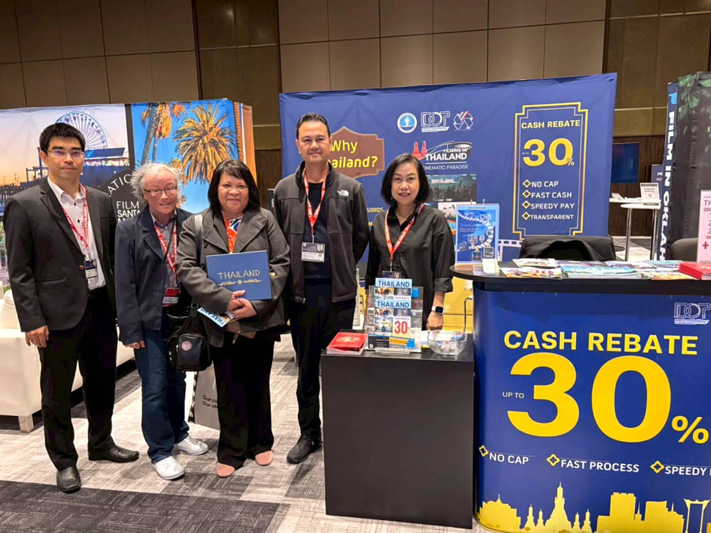 กรมการท่องเที่ยวเดินหน้าผลักดันไทยสู่ “ฮับถ่ายทำภาพยนตร์ระดับโลก” ในงาน American Film Market 2025 (AFM2025) ที่นครลอสแอนเจลิส สหรัฐอเมริกา โดยเมื่อวันที่ 15 พฤศจิกายน 2568 นายจาตุรนต์ ภักดีวานิช อธิบดีกรมการท่องเที่ยว พร้อมด้วยนางสาวอุบลวรรณ สุจริตกุล ผู้อำนวยการกองกิจการภาพยนตร์และวีดิทัศน์ต่างประเทศ นำทีมเจรจาเชิงรุก โชว์มาตรการ 30% Cash Rebate Incentive ที่เป็นจุดแข็งสำคัญในการดึงกองถ่ายต่างชาติสู่ไทย
