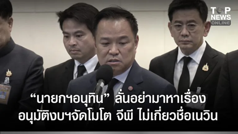 วันนี้ (18 พ.ย.68) เวลา 17.30 น. ที่ทำเนียบรัฐบาล นายอนุทิน ชาญวีรกูล นายกรัฐมนตรี และรัฐมนตรีว่าการกระทรวงมหาดไทย (มท.) ให้สัมภาษณ์กรณีคณะรัฐมนตรี (ครม.) อนุมัติงบประมาณสนับสนุนการแข่งขันรถจักยานยนต์ทางเรียบชิงแชมป์โลก (โมโต จีพี) วงเงินเกือบ 4,000 ล้านบาทว่า เรื่องดังกล่าวอนุมัตินานไปแล้วผ่านไปกว่า 2 สัปดาห์แล้วเอาเรื่องวันนี้ก่อน