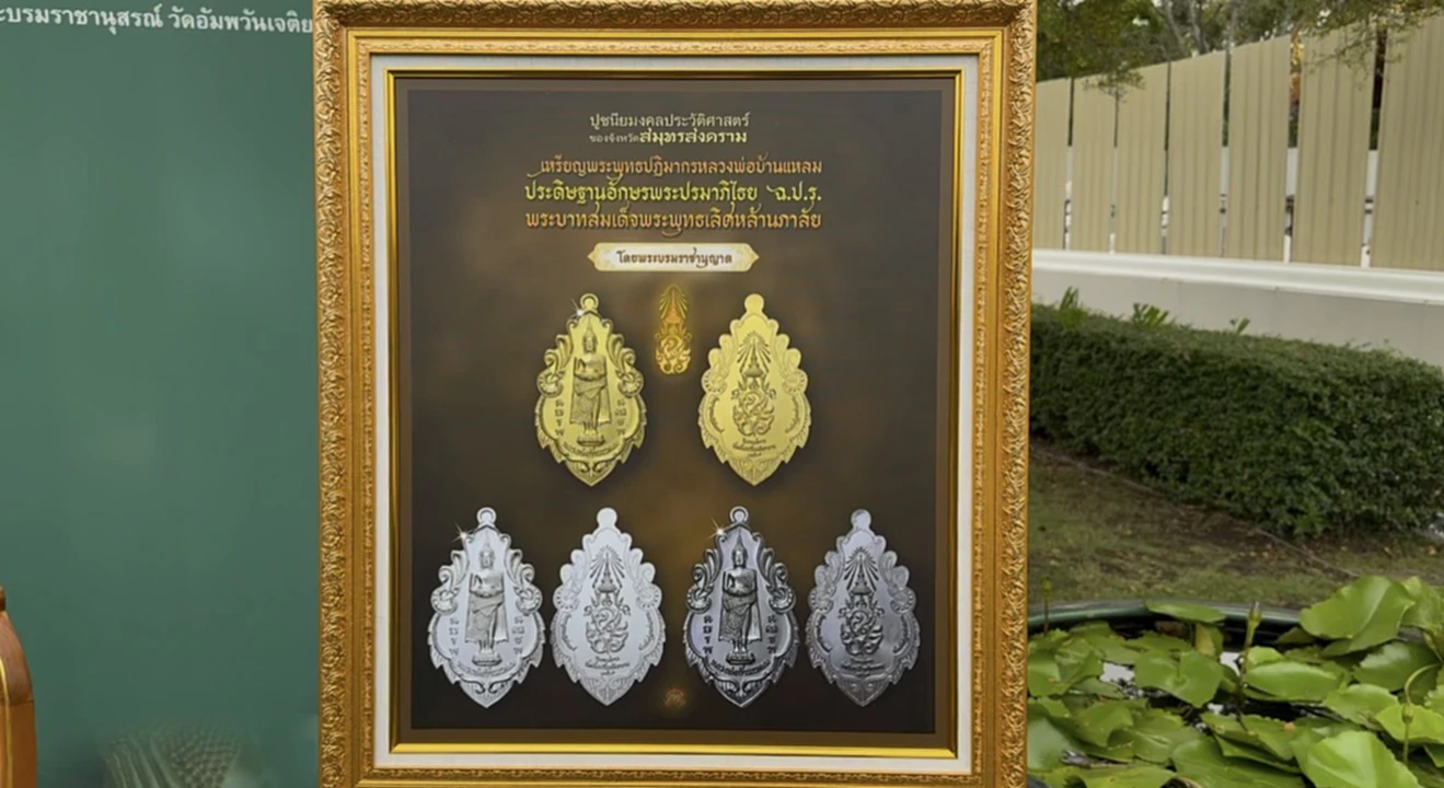 จังหวัดสมุทรสงครามจัดงานแถลงข่าวการจัดสร้างเหรียญที่ระลึก “เหรียญพระพุทธปฏิมากรหลวงพ่อบ้านแหลม – อักษรพระปรมาภิไธย ฉ.ป.ร. พระบาทสมเด็จพระพุทธเลิศหล้านภาลัย” โดยพระบรมราชานุญาต เพื่อสมทบทุนการบูรณปฏิสังขรณ์โบราณสถาน วัดอัมพวันเจติยาราม อำเภออัมพวา จังหวัดสมุทรสงคราม (พระปรางค์ พระพุทธรูป พระพุทธไสยาสน์ พระวิหารคด พระที่นั่งทรงธรรม และภูมิทัศน์)