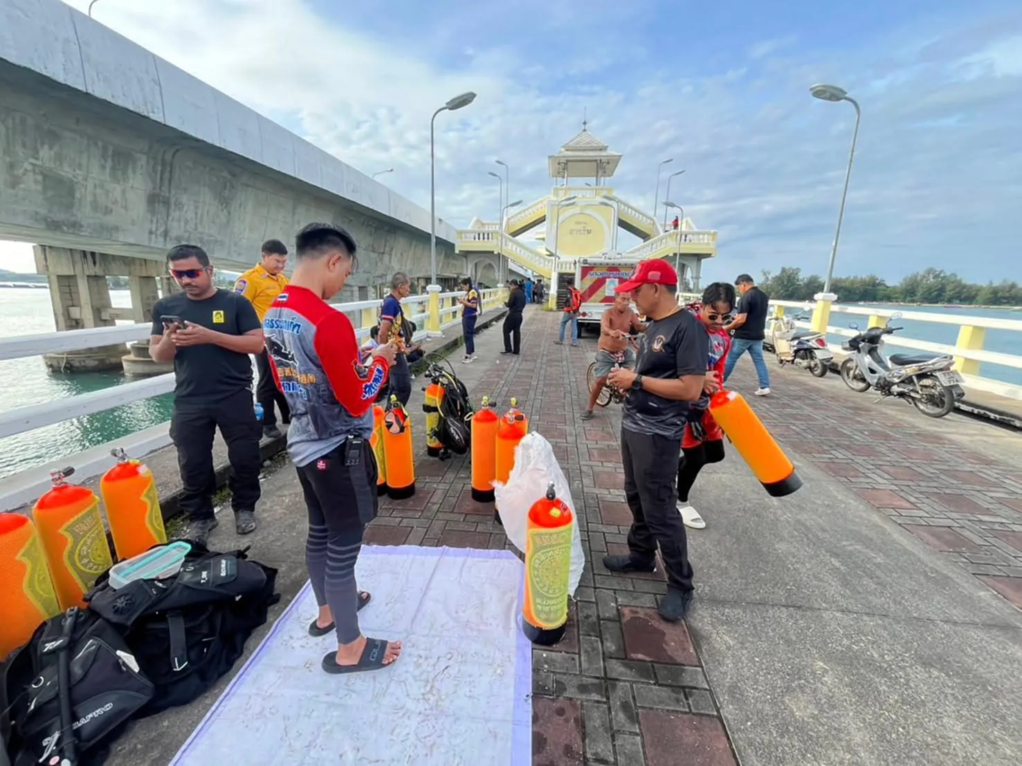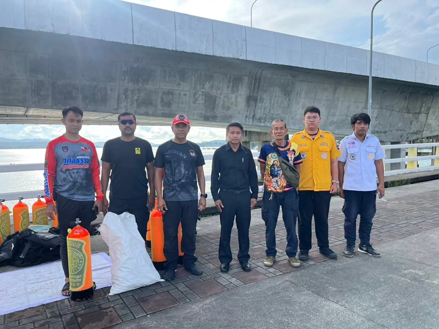 นายไพรัตน์ เพชรยวน ผู้ว่าราชการจังหวัดพังงา สั่งการทุกหน่วยงานระดมกำลังค้นหา และเร่งให้ความช่วยเหลือ เจ้าหน้าที่ปภ.พังงา ร่วมกับศูนย์ป้องกันและบรรเทาสาธารณภัยเขต 18 ภูเก็ต ผู้ใหญ่บ้านหมู่ 7 บ้านท่านุ่น ตำบลโคกกลอย อำเภอตะกั่วทุ่ง ชาวประมงในพื้นที่ และหน่วยกู้ภัย ได้ออกเรือค้นหาบริเวณใต้สะพานสารสิน พร้อมนักประดาน้ำจากมูลนิธิกุศลธรรมภูเก็ตสนับสนุนการค้นหาใต้น้ำ
