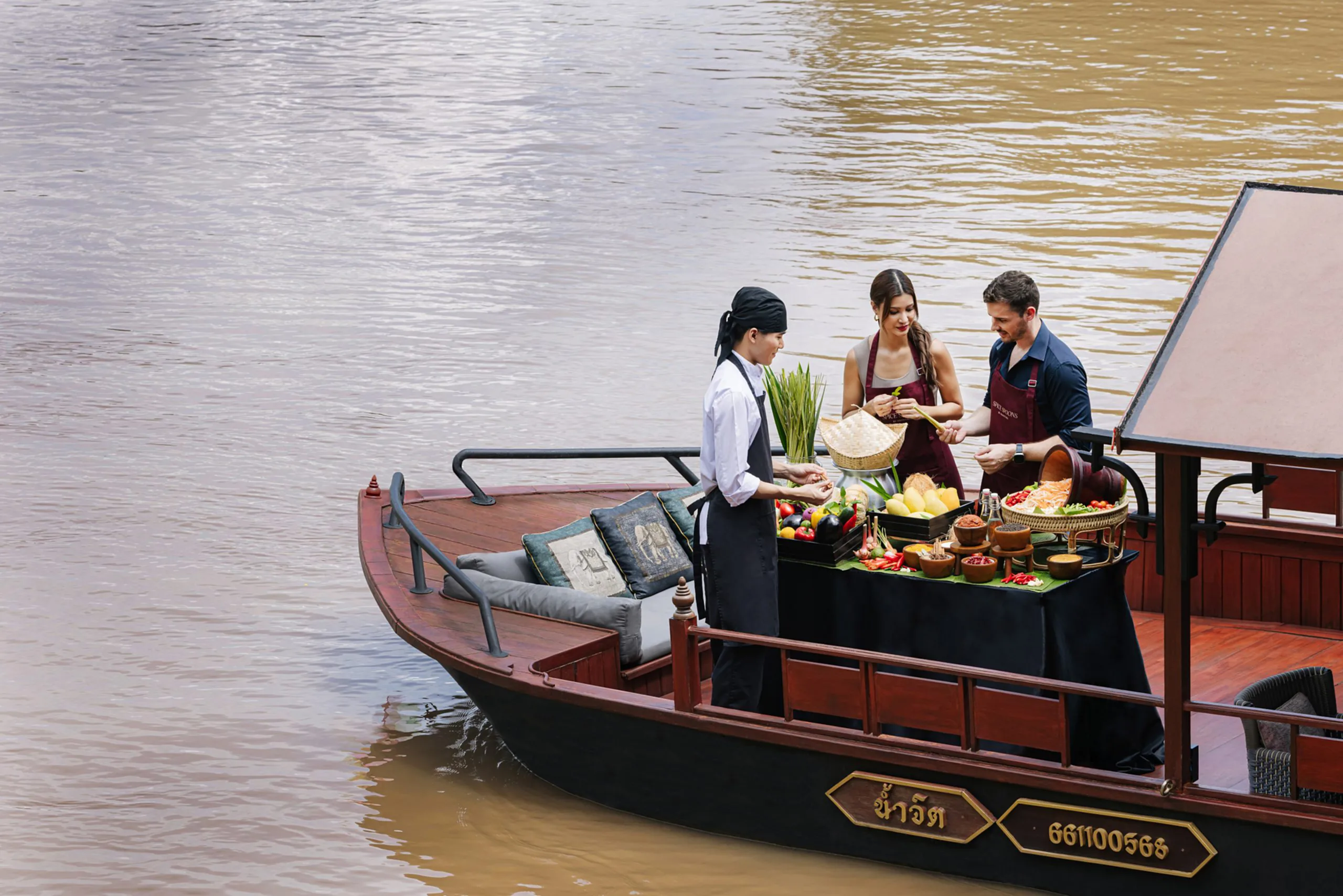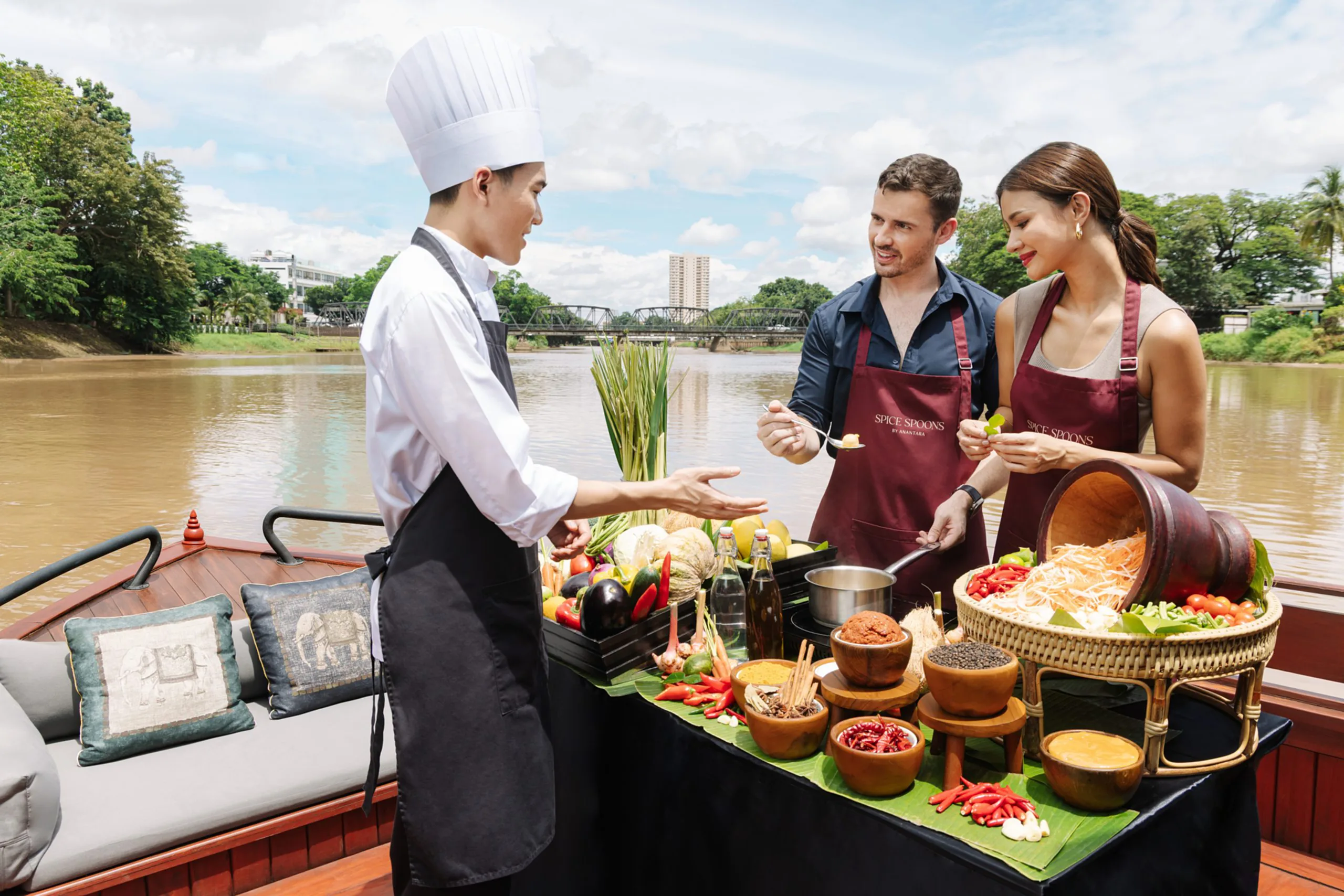 ประสบการณ์เรียนทำอาหารไทย Spice Spoons บนเรือ ราคาอยู่ที่ 4,800++ บาทต่อท่าน รวมการเยี่ยมชมตลาดด้วยรถตุ๊กตุ๊ก หรือ ราคา 3,800++ บาทต่อท่านสำหรับเฉพาะล่องเรือและคลาสทำอาหาร การเยี่ยมชมตลาดเริ่มเวลา 10.00 น. และเรือออกเวลา 11.00 น. กรุณาสำรองที่ล่วงหน้าอย่างน้อย 24 ชั่วโมง นอกจากนี้แขกยังสามารถเลือกเรียนทำอาหาร แบบดั้งเดิมที่ครัวสาธิต ณ ห้องอาหารโพธิ์เทอเรซ (Bodhi Terrace) ภายในรีสอร์ทได้เช่นกัน