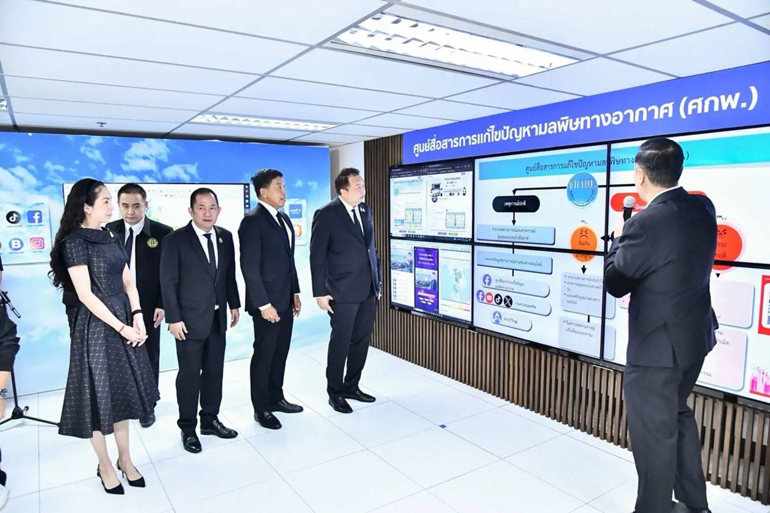 เมื่อวันที่ 19 พฤศจิกายน 2568 เวลา 09.30 นายสุชาติ ชมกลิ่น รองนายกรัฐมนตรีและรัฐมนตรีว่าการกระทรวงทรัพยากรธรรมชาติและสิ่งแวดล้อม เป็นประธานในพิธีเปิด ศูนย์สื่อสารการแก้ไขปัญหามลพิษทางอากาศ หรือ ศกพ. ณ ชั้น 7 อาคารกระทรวงทรัพยากรธรรมชาติและสิ่งแวดล้อม ร่วมกับ นายชัชชาติ สิทธิพันธุ์ ผู้ว่าราชการกรุงเทพมหานคร และเครือข่ายความร่วมมือ พร้อมมอบนโยบายด้านการเตรียมความพร้อมรับมือสถานการณ์มลพิษทางอากาศและการเสริมประสิทธิภาพระบบการแจ้งเตือนให้แก่ประชาชน โดยบูรณาการความร่วมมือร่วมกับหลายภาคส่วนทั้งภาครัฐและภาคเอกชน อาทิ กรมอุตุนิยมวิทยา GISTDA กระทรวงมหาดไทย กรุงเทพมหานคร บริษัท ไลน์ คอมพานี (ประเทศไทย) จำกัด และบริษัท แอดวานซ์ อินโฟร์ เซอร์วิส จำกัด (มหาชน) เพื่อบูรณาการข้อมูลที่สำคัญในการใช้เฝ้าระวังและแจ้งเตือนสถานการณ์ PM2.5 แก่ประชาชน