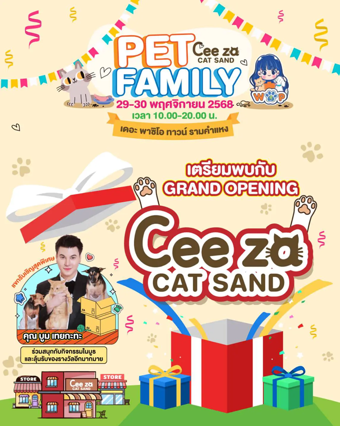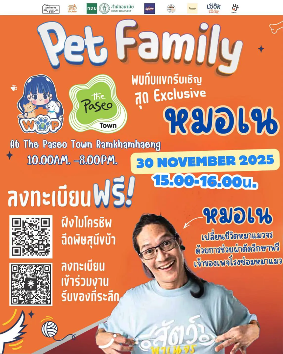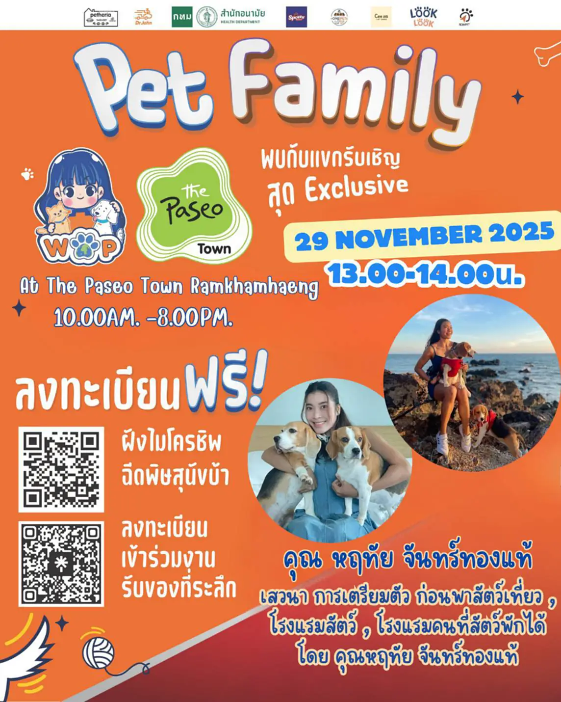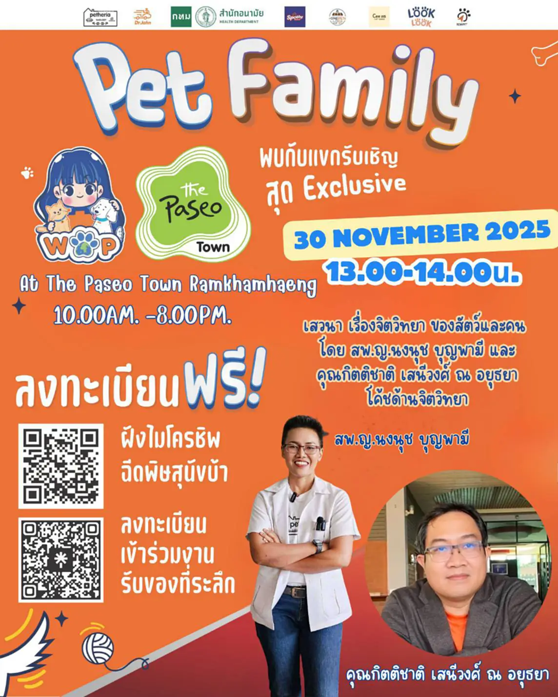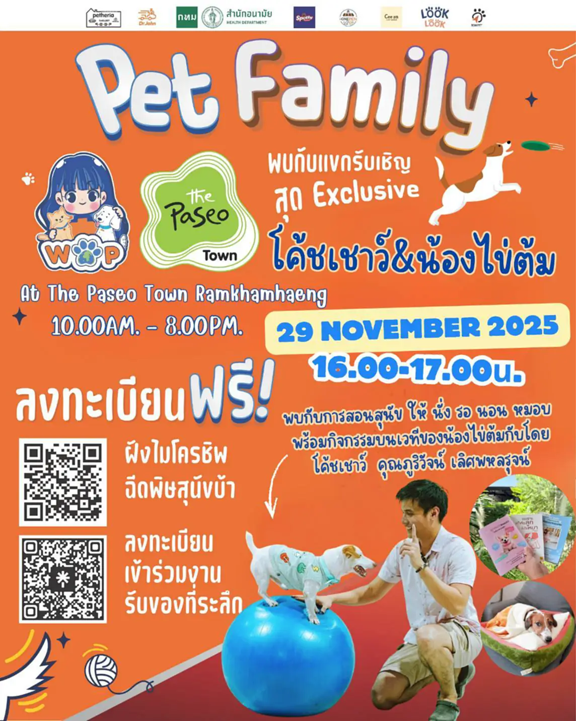 นางกชมน ผู้มีสิทธิ์  ประธานบริหาร บริษัท โลกของสัตว์(ไทยแลนด์) จำกัด เปิดเผยว่า  คนรักสัตว์ไม่ควรพลาด งาน “Pet Family By World of pet at the Paseo town Ramkhamhaeng”  ซึ่งจะมีการจัดขึ้นระหว่างวันที่ 29-30 พฤศจิกายน 2568  ระหว่างเวลา 10.00-20.00น. ที่ พาซีโอ สาขารามคำแหง  กรุงเทพมหานคร   โซน ชั้น 1 และชั้น 2  ตั้งแต่ เวลา: 10:00 น. – 20:00 น. ขนความสนุกและความรู้มาให้ทั้งครอบครัวคนรักสัตว์อย่างยิ่งใหญ่ส่งท้ายปี   ภายในงาน กิจกรรมแน่น สาระครบ กิจกรรมสำหรับครอบครัวและเด็กๆ งานนี้เน้นกิจกรรมอบอุ่นสไตล์ Pet Family โดยเฉพาะสำหรับครอบครัวคนรักสัตว์ ที่จะช่วยฝึกความอ่อนโยนให้กับเด็กๆ อาทิ