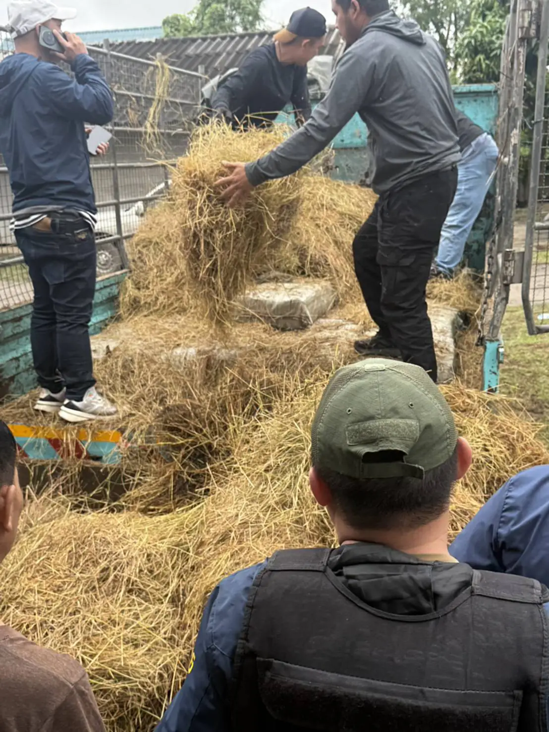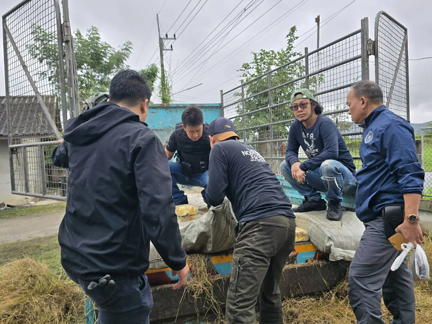 ต่อมาเวลา 07.40 น. ​ชุดจับกุมจึงแสดงตัวเข้าตรวจสอบ พบผู้ต้องหา 2 ราย คือ นายนิติฐพนธ์ อินต๊ะจักร์ อายุ 50 ปี และ น.ส.วิมลวรรณ อินต๊ะจักร์ อายุ 48 ปี ชาว อ.พาน จ.เชียงราย กำลังนำหญ้าฟางขึ้นท้ายรถบรรทุกเพื่อปกปิดอำพรางของกลาง เมื่อเจ้าหน้าที่ตรวจสอบอย่างละเอียด พบยาเสพติดให้โทษประเภท 1 (ไอซ์) ซุกซ่อนอยู่ภายในถึง 20 กระสอบ รวมน้ำหนักกว่า 500 กิโลกรัม