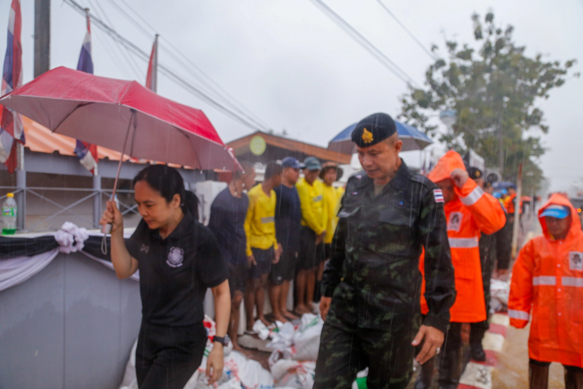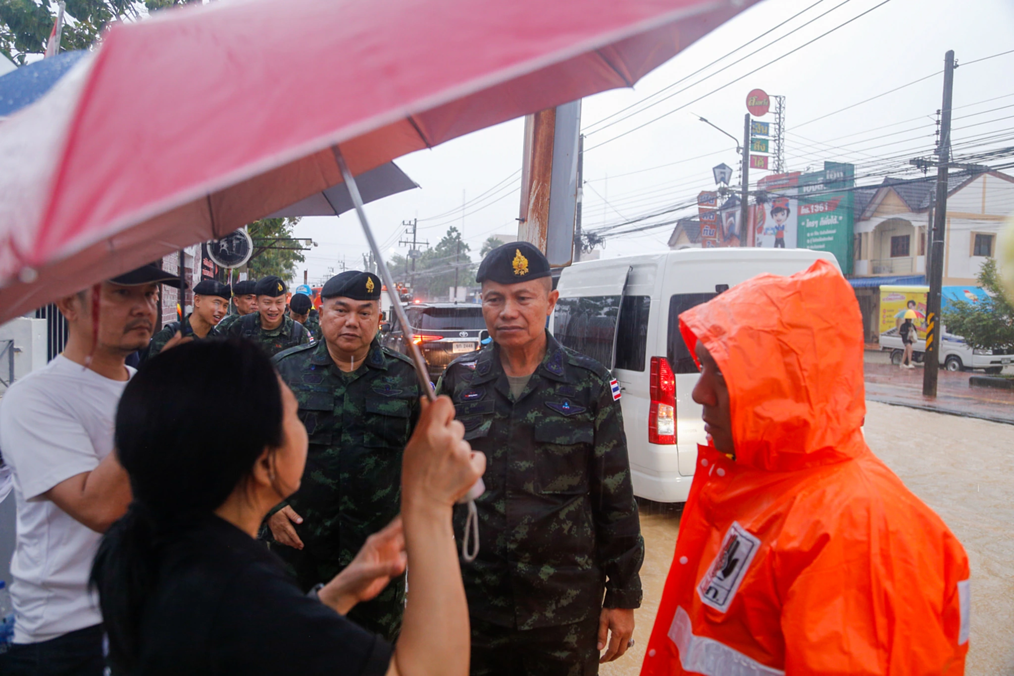 พื้นที่อำเภอไชยาได้รับผลกระทบอย่างหนักจาก ฝนตกสะสมต่อเนื่องหลายวัน (16–19 พฤศจิกายน) ประกอบกับมวลน้ำป่าจาก อุทยานแห่งชาติแก่งกรุง ไหลหลากลงสู่พื้นที่ลุ่ม ส่งผลให้น้ำท่วมหลายหมู่บ้าน ระดับน้ำบางจุดสูงกว่า 1 เมตร บ้านเรือนประชาชน รวมถึงสถานที่ราชการถูกน้ำท่วมเป็นวงกว้าง โดยเฉพาะเขตเทศบาลเมืองไชยา ถนนหลายสายถูกน้ำท่วม รถขนาดเล็กสัญจรลำบาก แม่ทัพภาคที่ 4 ได้เน้นย้ำความพร้อมของกองทัพภาคที่ 4 ในการช่วยเหลือประชาชน ทั้งกำลังพล ยุทโธปกรณ์ รถลุยน้ำ และเรือท้องแบน พร้อมสนับสนุนการอพยพประชาชน การขนย้ายสิ่งของ และการเข้าถึงผู้ประสบภัยในพื้นที่เสี่ยง พร้อมสร้างความเชื่อมั่นแก่ประชาชนว่า “กองทัพจะอยู่เคียงข้างพี่น้องประชาชน และพร้อมช่วยเหลืออย่างเต็มกำลัง”