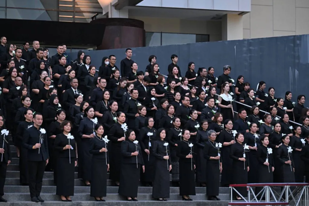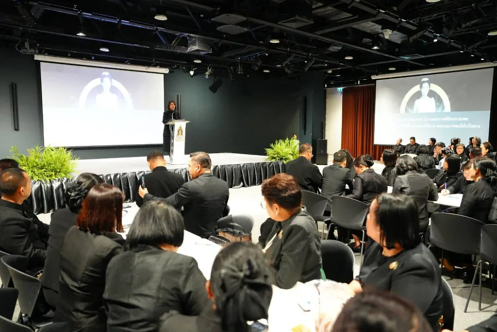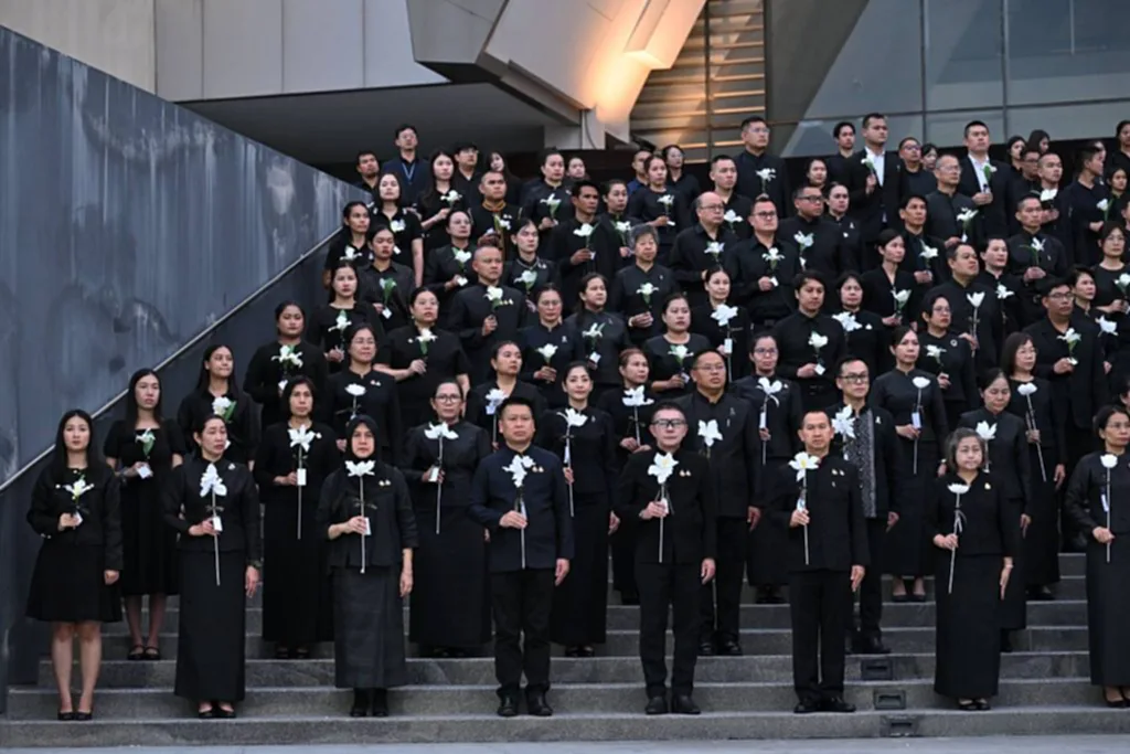 โอกาสนี้ นายประสพ เรียงเงิน ปลัดกระทรวงวัฒนธรรม นำผู้เข้าร่วมงานถือ “ดอกไม้ปณิธานความดี” และยืนสงบนิ่งเป็นเวลา 93 วินาที เพื่อน้อมรำลึกในพระมหากรุณาธิคุณของสมเด็จพระนางเจ้าสิริกิติ์ พระบรมราชินีนาถ พระบรมราชชนนีพันปีหลวง “อัคราภิรักษศิลปิน” พระผู้เสด็จสู่สวรรคาลัย จากนั้นนายธนิสร์ ศรีกลิ่นดี ศิลปินแห่งชาติ สาขาศิลปะการแสดง (ดนตรีไทยสากล) ประจำปี พ.ศ. 2559 เป่าขลุ่ยบทเพลงแสดงความอาลัย และนางชมัยภร บางคมบาง ศิลปินแห่งชาติ สาขาวรรณศิลป์ ประจำปี พ.ศ. 2557 กล่าวบทประพันธ์แสดงความอาลัย