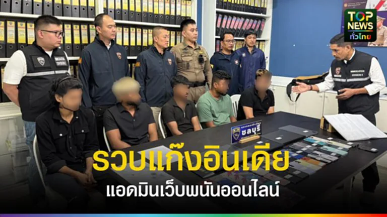 เมื่อช่วงเย็นของวันที่ 19 พฤศจิกายน 2568 พ.ต.อ.นภัสพงษ์ โฆษิตสุริยมณี ผกก.ตม.จว.ชลบุรี พ.ต.ท.กวิณวัชร์ อารยะสุริวงศ์ รอง ผกก.ตม.จว.ชลบุรี นำกำลังชุดสืบสวนตำรวจตรวจคนเข้าเมือง เข้าตรวจสอบห้องพักภายในคอนโดฯแห่งหนึ่ง ย่านถนนซอยเทพประสิทธิ์ 17 ม.12 ต.หนองปรือ อ.บางละมุง จ.ชลบุรี หลังสืบทราบว่ามีกลุ่มชาวอินเดีย มีพฤติกรรมแอบลักลอบทำงานโดยผิดกฎหมาย เมื่อไปถึงคอนโดฯดังกล่าว ตรวจสอบห้องพักชั้น 2 ห้อง 205 พบกลุ่มชายชาวอินเดีย 5 คน กำลังนั่งทำงาน อยู่หน้าคอมพิวเตอร์โน๊ตบุ๊ก และ มีโทรศัพท์มือถือกว่า 20 เครื่อง วางเรียงรายเกลื่อนโต๊ะ ตำรวจจึงแสดงตัวขอตรวจค้น เบื้องต้นสามารถยึด คอมพิวเตอร์โน๊ตบุ๊ก ได้จำนวน 3 เครื่อง , โทรศัพท์มือถือ 22 เครื่อง , แท็บเล็ต 1 เครื่อง , บัตรเครดิตการด์ , และ สมุดบันทึกการโอนเงิน เข้า-ออก จำนวนหลายล้านรูปี คิดเป็นเงินไทยประมาณ 2 ล้านบาท ซึ่งลักษณะการโอนเงินคล้ายกับเติมเงินเข้าระบบ เว็บพนันออนไลน์ ต่อมาตำรวจ ตม. จึงเชิญตัวกลุ่มชาวอินเดียทั้งหมดไปทำการสอบสวนขยายผล ทราบชื่อต่อมา คือ 1. MR.SHIVAM SHIVAM อายุ 29 ปี ,2. MR.SANDEEP KUMAR อายุ 24 ปี , 3. MR.SAKIR SAKIR อายุ 27 ปี , 4. MR.KAPIL KAPIL อายุ 24 ปี และ 5. MR.GAURAV JAISWAL อายุ 39 ปี โดยทั้งหมดยังให้การปฏิเสธและให้การวกไปวนมา โดยอ้างว่าทำหน้าที่เป็นแอดมินตอบลูกค้า แต่ไม่ยอมบอกว่าเป็นงานบริการเกี่ยวกับด้านใด พ.ต.อ.นภัสพงษ์ โฆษิตสุริยมณี ผกก.ตม.จว.ชลบุรี เปิดเผยว่าการจับกุมในครั้งนี้สืบเนื่องมาจากได้รับเบาะแสว่ามีกลุ่มชาวอินเดียลักลอบเป็นแอดมิน ให้กับเว็บพนันออนไลน์ของประเทศอินเดีย โดยแอบลักลอบเข้ามาใช้ประเทศไทยเป็นฐานปฏิบัติการ จึงมีการวางแผนเข้าตรวจสอบและยึดของกลางได้จำนวนมากดังกล่าว เบื้องต้น ตำรวจเตรียมแจ้งข้อกล่าวหา ในข้อหา “เป็นคนต่างด้าวที่ทำงานโดยไม่มีใบอนุญาตทำงาน หรือทำงานนอกเหนือจากที่มีสิทธิจะทำได้ ตามมาตรา 8 พ.ร.ก.การบริหารจัดการการทำงานของคนต่างด้าว พ.ศ.2560” และนำตัวส่ง สภ.เมืองพัทยา ดำเนินการตามกฎหมายต่อไป ภาพ/ข่าว อนันต์ กิ่งสร / ทิวากร กฤษมณี ผู้สื่อข่าว TOPNEWS ทั่วไทย จ.ชลบุรี ล่างชื่อ ข่าวที่น่าสนใจ ข่าวที่เกี่ยวข้อง -