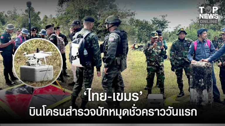 จนท.ชุดสำรวจ “ไทย-กัมพูชา” บินโดรนสำรวจพิกัดปักหมุดชั่วคราววันแรก หลักเขต 42 บ้านหนองหญ้าแก้ว – Top News รายงาน
