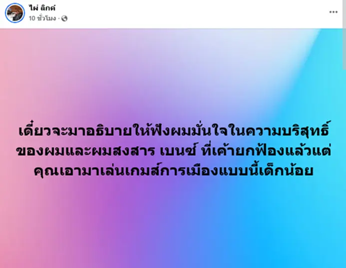 เดือดมาเดือดกลับ “ไผ่ ลิกค์” พร้อมแจงทุกครหา ซัดกลับ “ไอซ์ รักชนก” เล่นการเมืองแบบเด็กน้อย
