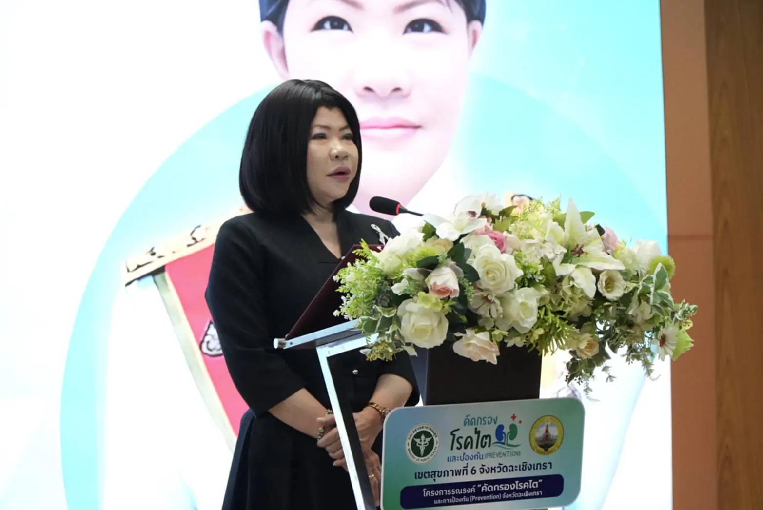 วันพฤหัสบดีที่ 20 พฤศจิกายน พ.ศ. 2568 เวลา 08.30 น. ณ ห้องประชุมพุทธโสธร ชั้น 8 อาคารสนับสนุนบริการ และบริเวณอาคารสนับสนุนบริการ ชั้น 1 โรงพยาบาลพุทธโสธร นางสาวฉัตรประอร นิยม รองผู้ว่าราชการจังหวัด รักษาราชการแทนผู้ว่าราชการจังหวัดฉะเชิงเทรา ร่วมพิธีเปิดและกล่าวต้อนรับผู้เข้าร่วมกิจกรรมรณรงค์ “คัดกรองไตและการป้องกัน (Prevention) การบริจาคไตและการปลูกถ่ายไต” พร้อมด้วย นายปรีดา วรหาร นายแพทย์สาธารณสุขจังหวัดฉะเชิงเทรา, พญ.สราพร มัทยาท ผอ.โรงพยาบาลพุทธโสธร, หัวหน้าส่วนราชการ, ผู้แทนส่วนราชการ, ผู้เข้าร่วมกิจกรรม, สื่อมวลชน และคณะผู้บริหารกระทรวงสาธารณสุข โดยมี นพ.วีรวุฒิ อิ่มสำราญ รองปลัดกระทรวงสาธารณสุข เป็นประธานในพิธี