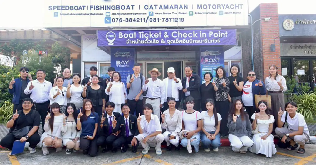 วันที่ 20 พ.ย. 2568 วิทยาลัยอาชีวศึกษาภูเก็ต สังกัดสำนักงานคณะกรรมการการอาชีวศึกษา (สอศ.) เดินหน้าขยายความร่วมมือด้านการอาชีวศึกษาไทย–จีน ภายใต้โครงการเส้นทางสายไหมแห่งการเสริมพลังความร่วมมือระหว่างสถาบันกับภาคธุรกิจ เพื่อยกระดับทักษะวิชาชีพของนักเรียน นักศึกษาให้พร้อมรองรับอุตสาหกรรมยุคใหม่ และมาตรฐานระดับสากล วิทยาลัยฯ ได้นำคณะศึกษาดูงานจากวิทยาลัยอาชีวศึกษาการท่องเที่ยวเจ้อเจียง ประเทศจีน ลงพื้นที่สัมผัสเส้นทางท่องเที่ยวทางทะเลสำคัญของจังหวัดภูเก็ต พร้อมการต้อนรับจาก ดร.วิทยา เกตุชู ผู้อำนวยการวิทยาลัยฯ ผู้บริหาร คณะครู บุคลากร และนักเรียน นักศึกษา รวมถึงการสนับสนุนจากบริษัท นิกรมารีน จำกัด